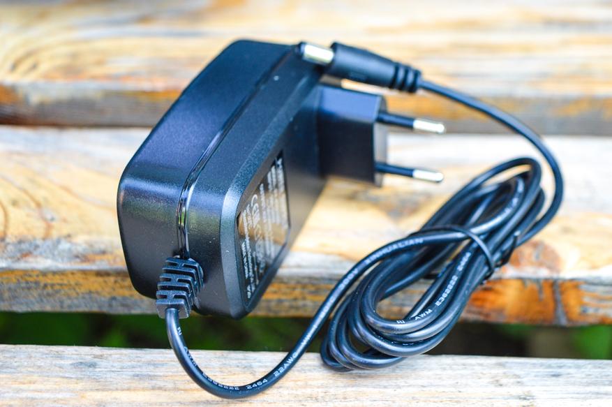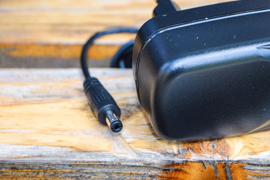 Внешнее зарядное устройство с блоком питания и проводом чуть больше 1 метра. На конце круглый штекер для подключения к самокату. Блок питания выдает 42 В / 1 А, поэтому время полного заряда встроенного аккумулятора достигает около 7 часов. Индикацию уровня заряда можно контролировать на блоке питания. При подключении и заряде она горит красным, а после зеленым.