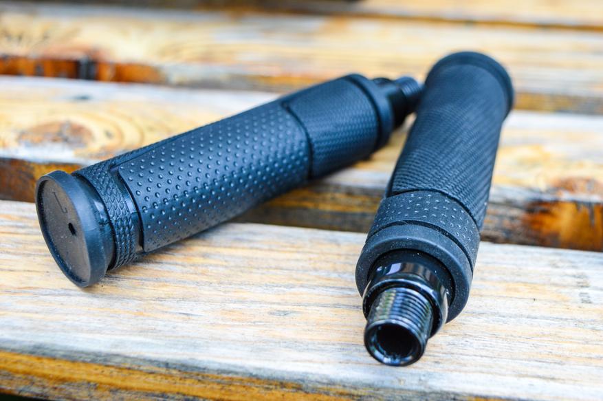 Ручки с резиновыми грипсами и особой структурой, благодаря которой руль удерживаешь довольно цепкой. Руки не скользят даже после продолжительного движения. Сами резиновые накладки не прокручиваются на ручках. Установка на рулевую колонку резьбовым соединением без дополнительной фиксации.