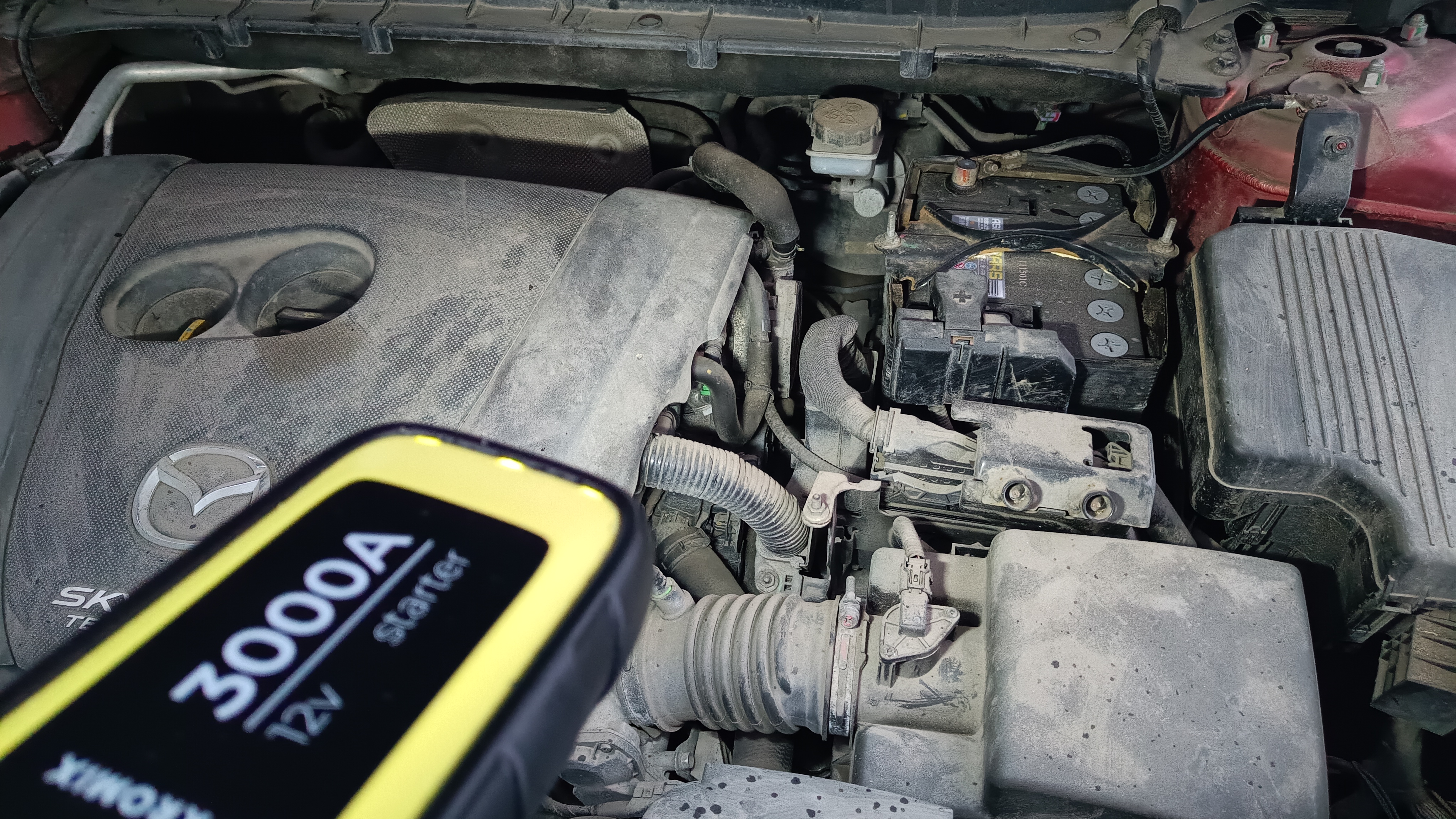 Проверим работоспособность на двухлитровом двигателе. Был установлен штатный аккумулятор с низким уровнем заряда аккумулятора в пределах 7,5 В. Емкость аккумулятора составляет 65 Ач. На данный момент у нас еще не сильные морозы, но по утрам начинаются утренники до -10 градусов.