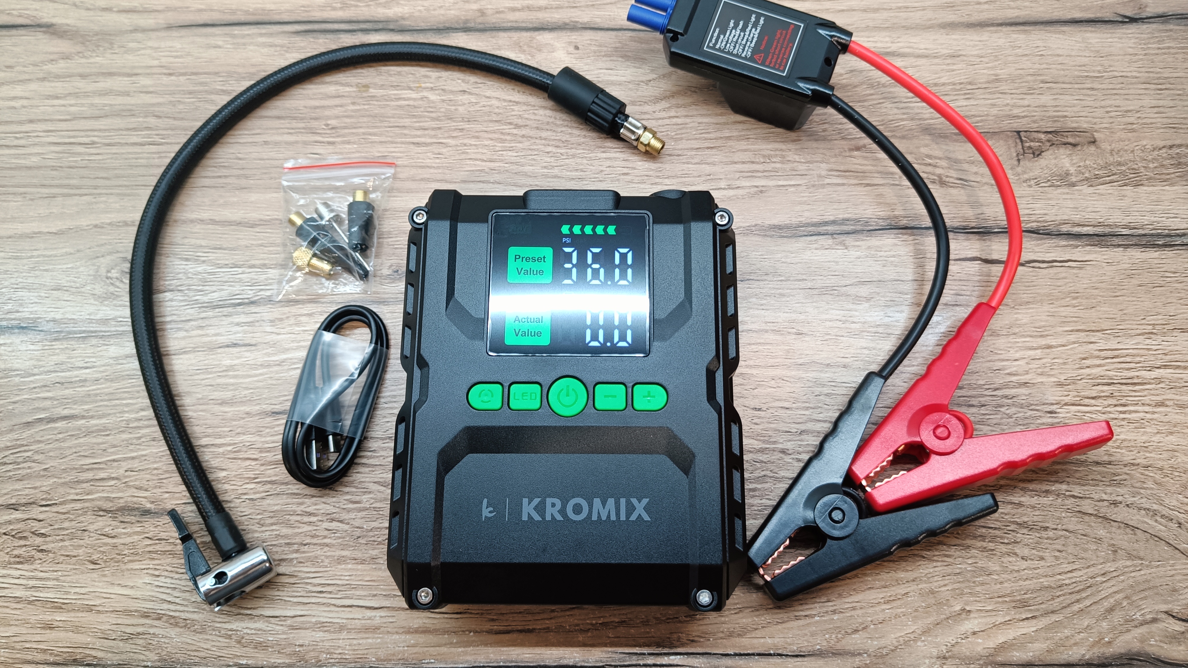 Обзор пуско-зарядного устройства Kromix Restarter для автомобиля: встроенный компрессор, фонарь и повербанк