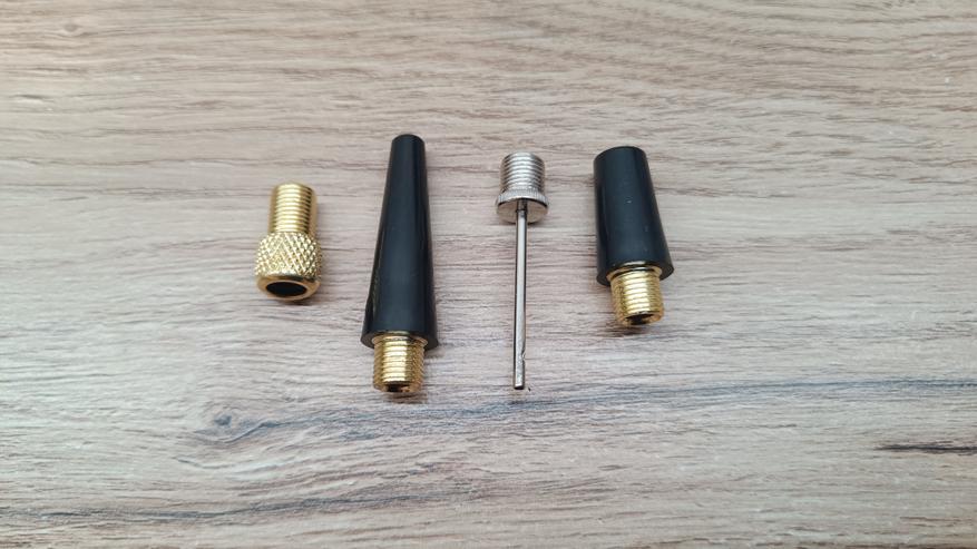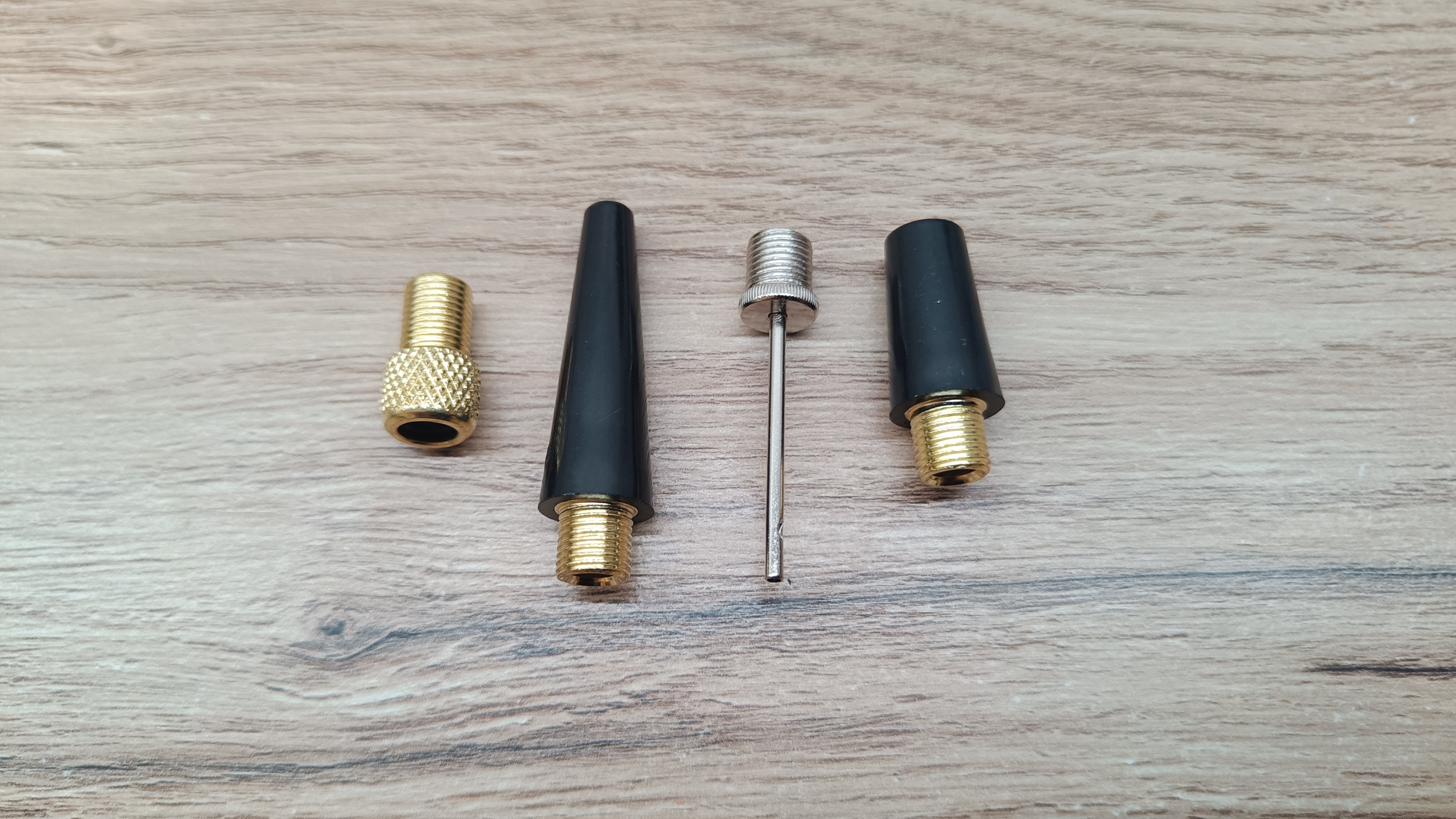 В комплекте есть несколько переходников. Их можно использовать для накачивания различных мячей и других предметов. Часть соединений выполнено из латуни.