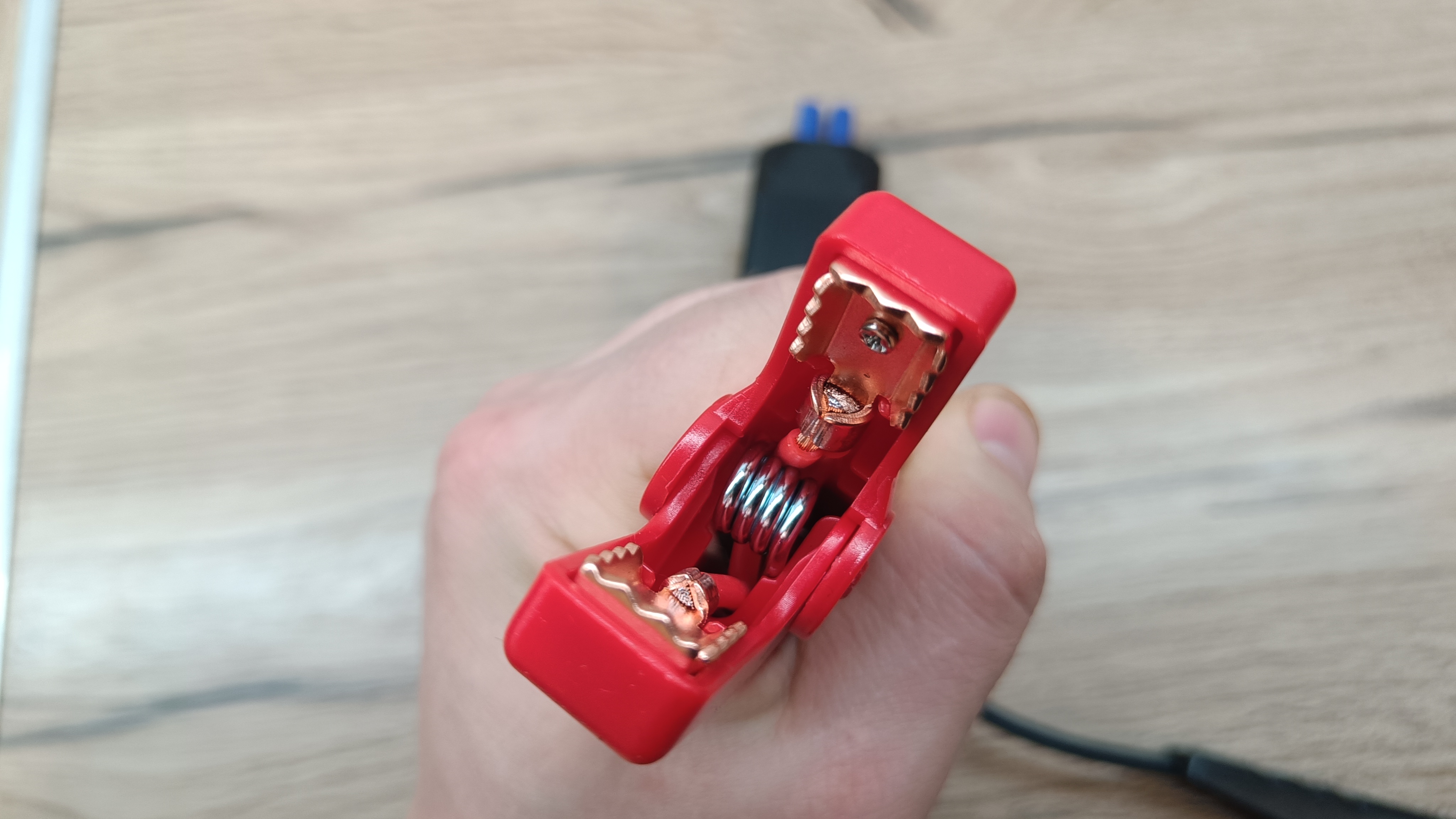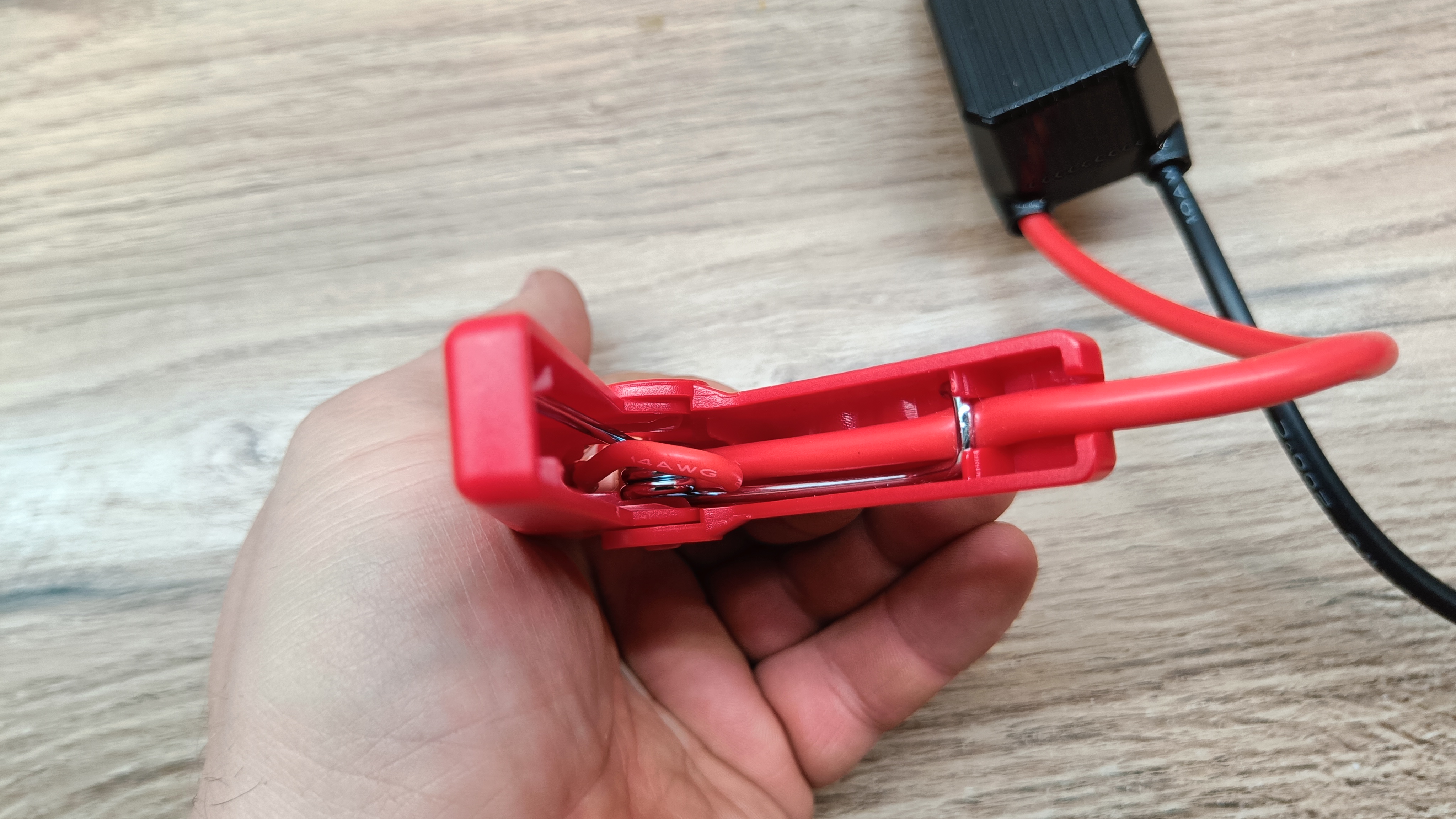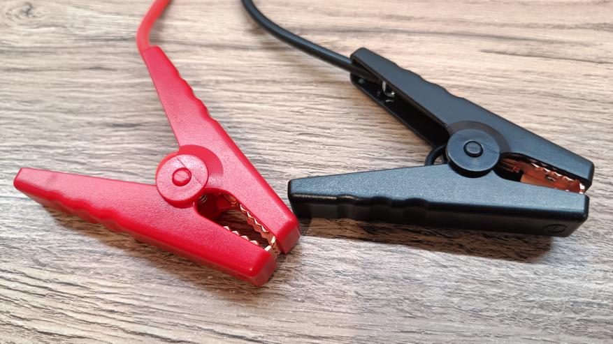 К смарт проводам отдельное внимание. Длины будет достаточно для подключения к автомобильному аккумулятору большой емкости. «Крокодилы» выполнены из красного и черного пластика, а губки с обеих сторон, для качественного контакта во время запуска двигателя. Защитный блок изготовлен таким образом, что позволяет подключиться к бустеру лишь единственным способом. В корпусе размещаются индикаторные светодиоды красного и зеленого цвета, соответствующие правильному подключению или ошибке. Неоспоримый плюс оболочки данных проводов в том, что они выполнены из силикона и не твердеют на сильном морозе.