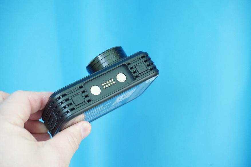 Из интересного отмечу оптический сенсор для контроля жестов (взмахов), расположенный в нижней части корпуса. Там же находится и слот для карточки памяти — используется тип MicroSDXC/MicroSDHC. Пробовал карту на 128 Гб — хватает на длительное время. Также отмечу функцию Wi-Fi доступа и работу с приложением, режим парковки, встроенный суперконденсатор, магнитный способ фиксации, а также широкий угол обзора в 170 градусов.