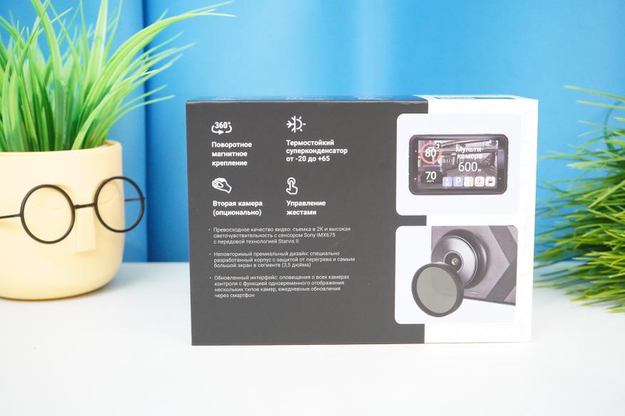 Итак, на обзор попало четвёртое поколение популярного видеорегистратора CityGo от бренда Roadgid. Именно эту модель можно найти в двух версиях — это базовый вариант (2К запись) и вариант с дополнительной камерой (FHD + FHD запись). В данном обзоре будет именно версия видеорегистратора с передней и задней камерой (2CH), так как именно такой вариант обеспечивает улучшенный контроль дорожной обстановки. Упаковка фирменная, с указанием основных преимуществ модели и с внешним видом, включая фотографию поляризационного фильтра.