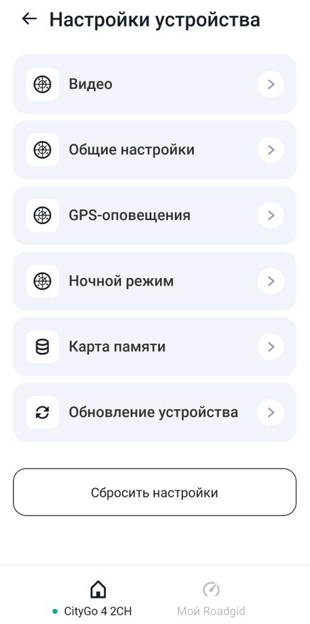 Одно из преимуществ этой модели — это работа со смартфоном через Wi-Fi подключение. В фирменном приложении Roadgid есть возможность получить доступ к памяти и настройкам видеорегистратора. Приложение можно загрузить как с маркета приложений, так и с официального сайта. В этом же приложении предусмотрен раздел с обновлением программного обеспечения, а также баз GPS. Кстати, на момент публикации была версия базы от 7 января (обновляется ежедневно).