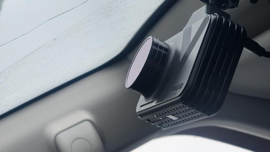 Я, как правило, выбираю место справа и чуть позади салонного зеркала. Тем более, у меня в этом месте предусмотрен USB-разъем для питания гаджетов. Напомню, что модель Roadgid CityGo 4 2CH оснащается источником питания, который работает как с бортовой сетью легковых автомобилей (12 Вольт), так и грузового/коммерческого транспорта (24 Вольт). Вот так выглядит видеорегистратор, закрепленный на лобовом стекле. А для корректной работы поляризационного фильтра нужно будет вращать кольцо на объективе, добиваясь изображения без бликов — проще всего это сделать в вечернее время при свете фонарей.