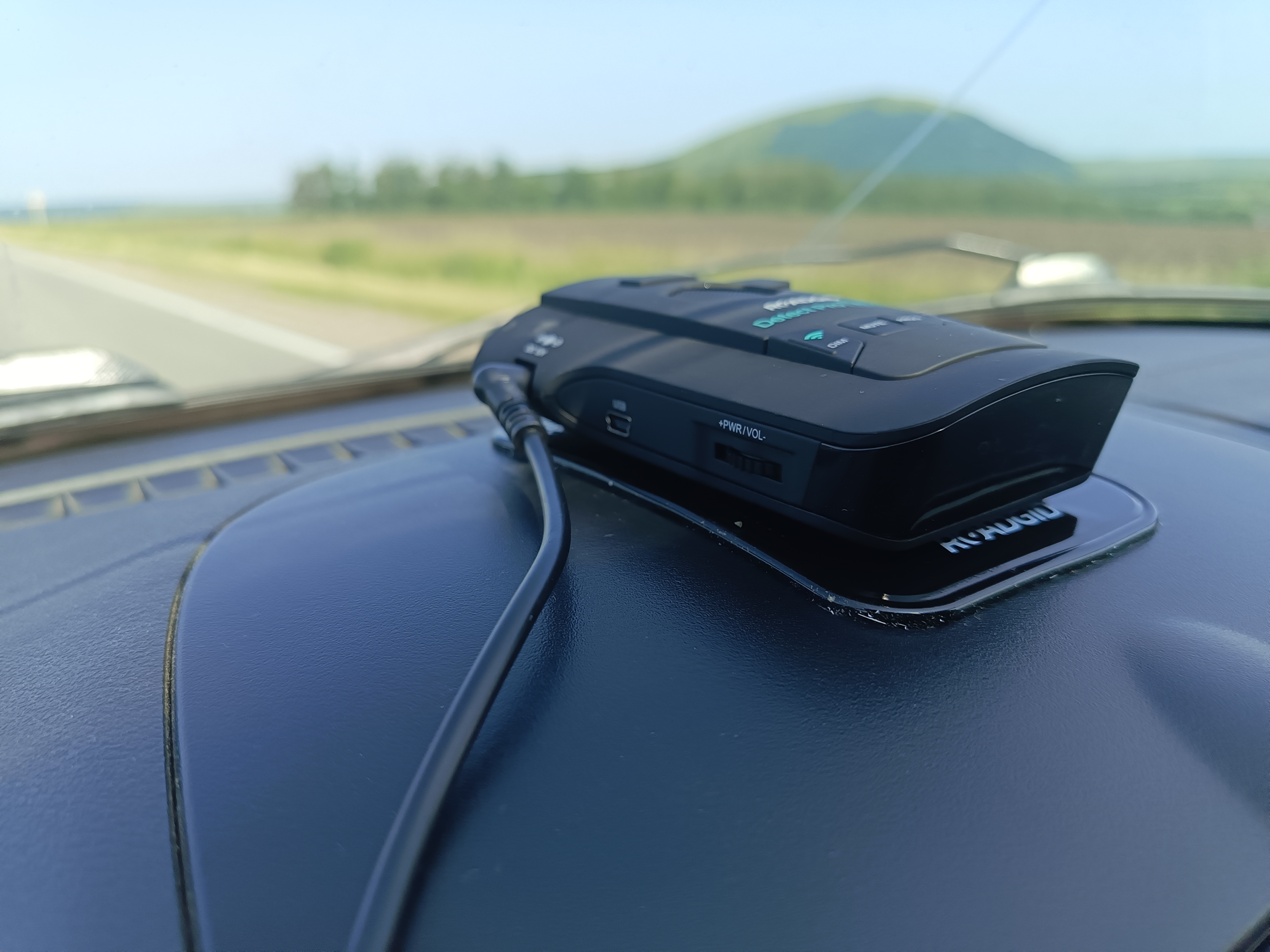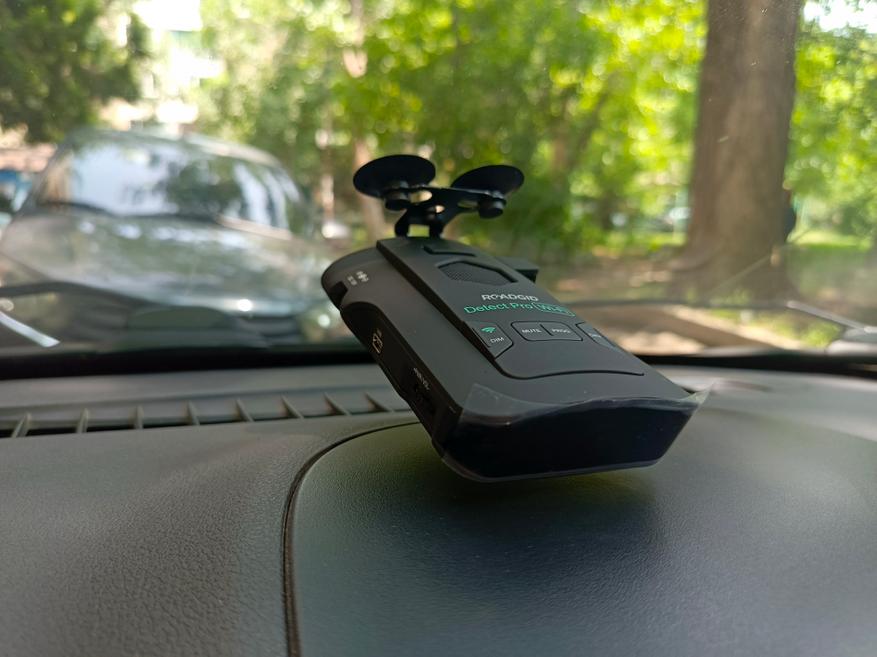 Монтаж данного радара не требует специальных навыков или длительного времени. Достаточно установить радар двумя доступными способами. Первый — это просто положить на панель торпедо через антискользящий коврик. Второй вариант — это с помощью крепления на присоске на лобовое стекло. Главное — установить так, чтобы устройство не создавало слепых зон и не создавало помех при движении. При такой установке устройство провисает и на кочках может упасть. Поэтому желательно, чтобы один край касался панели приборов. Сами присоски маленькие и без прижимного механизма.
