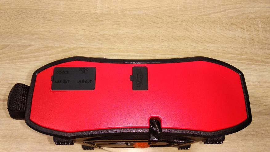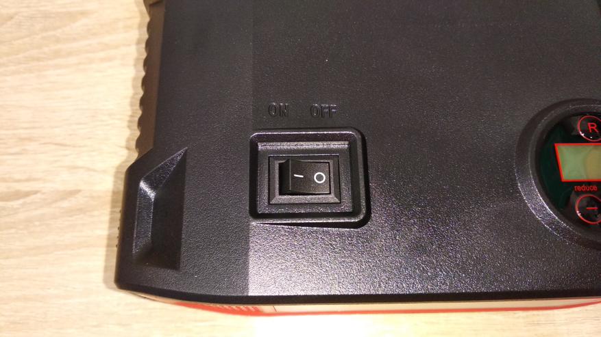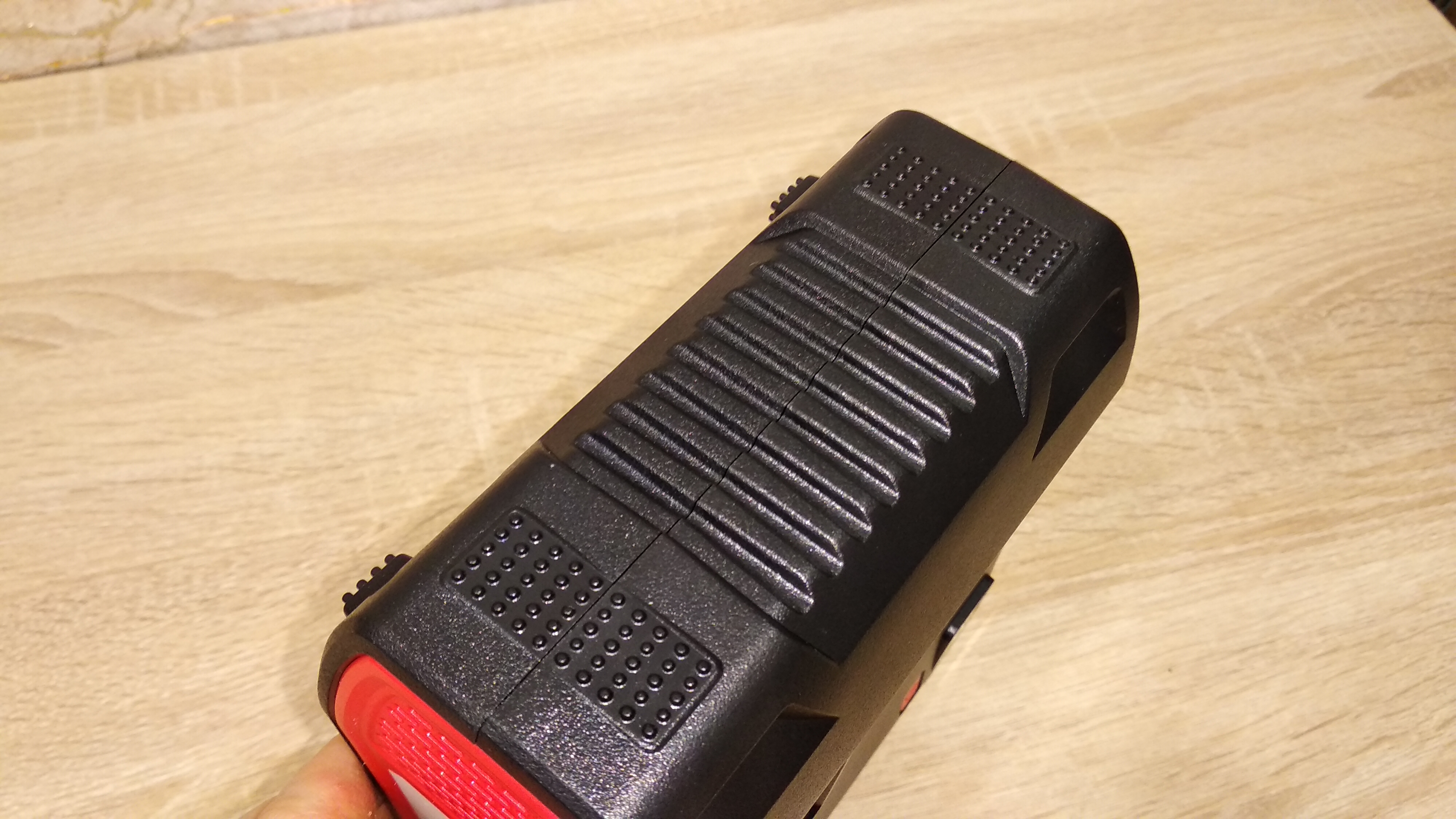 Пусковое имеет массивный корпус двух цветов, красный и черный. Есть два экрана, 2х позиционный общий переключатель питания, ручка для переноски. Пластик шероховатый, при сдавливании не скрипит, сборка неплохая, заусенцев или облоя нет, подогнаны части корпуса нормально.