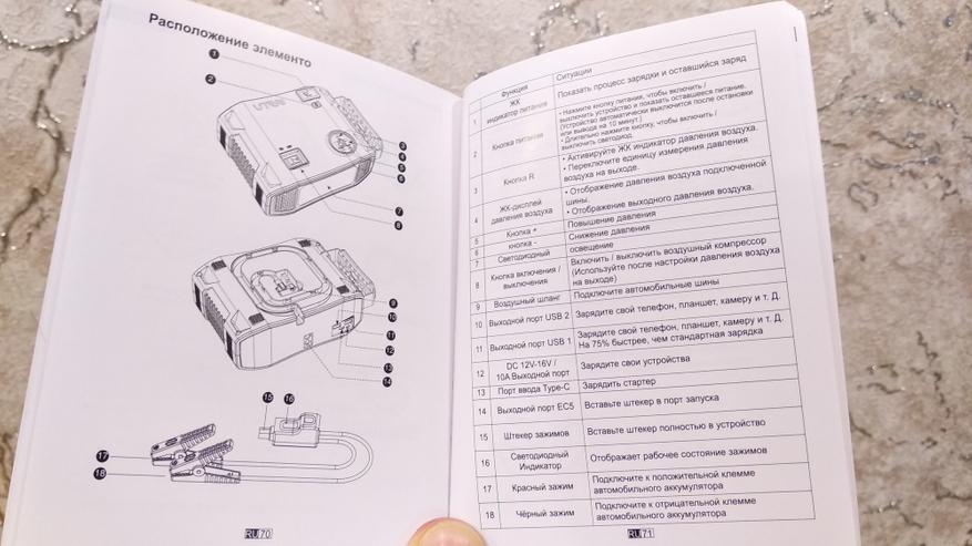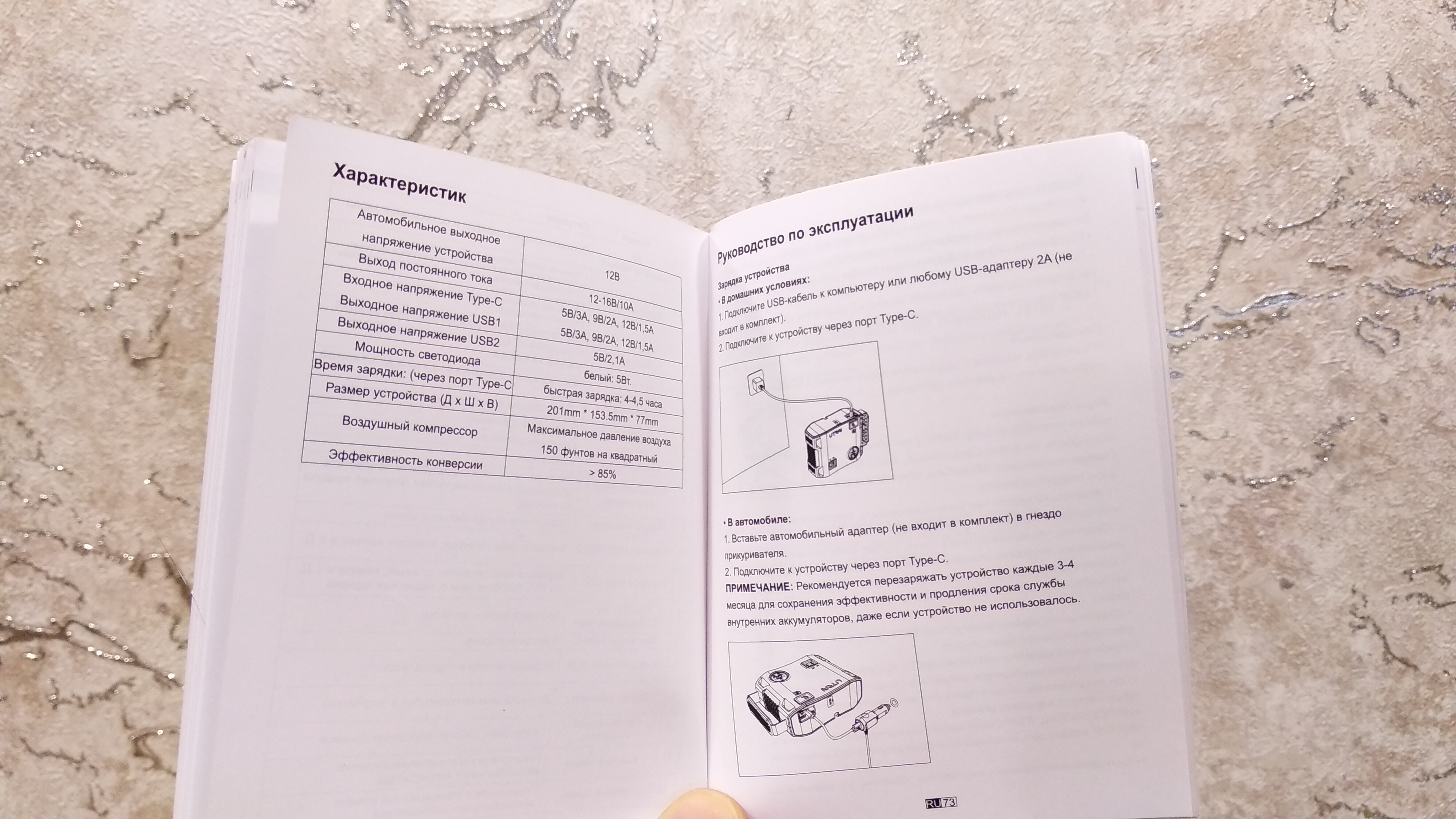 | Тип | Автомобильное пусковое устройство с компрессором и функцией внешнего аккумулятора |
