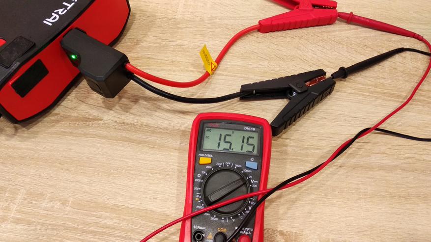 После подключения, крокодилы сразу под напряжением, поэтому к головному устройству подключать только при необходимости, несмотря на то, что у бустера куча защит. Для теста как раз стоят морозы, машину не трогал пару дней, затем решил подсадить аккум включенными габаритами и аварийкой. В итоге в спокойном состоянии напряжение было около 12 В, и это не хватало даже на оборот при попытке завести двигатель, тем более с загустевшим маслом.
