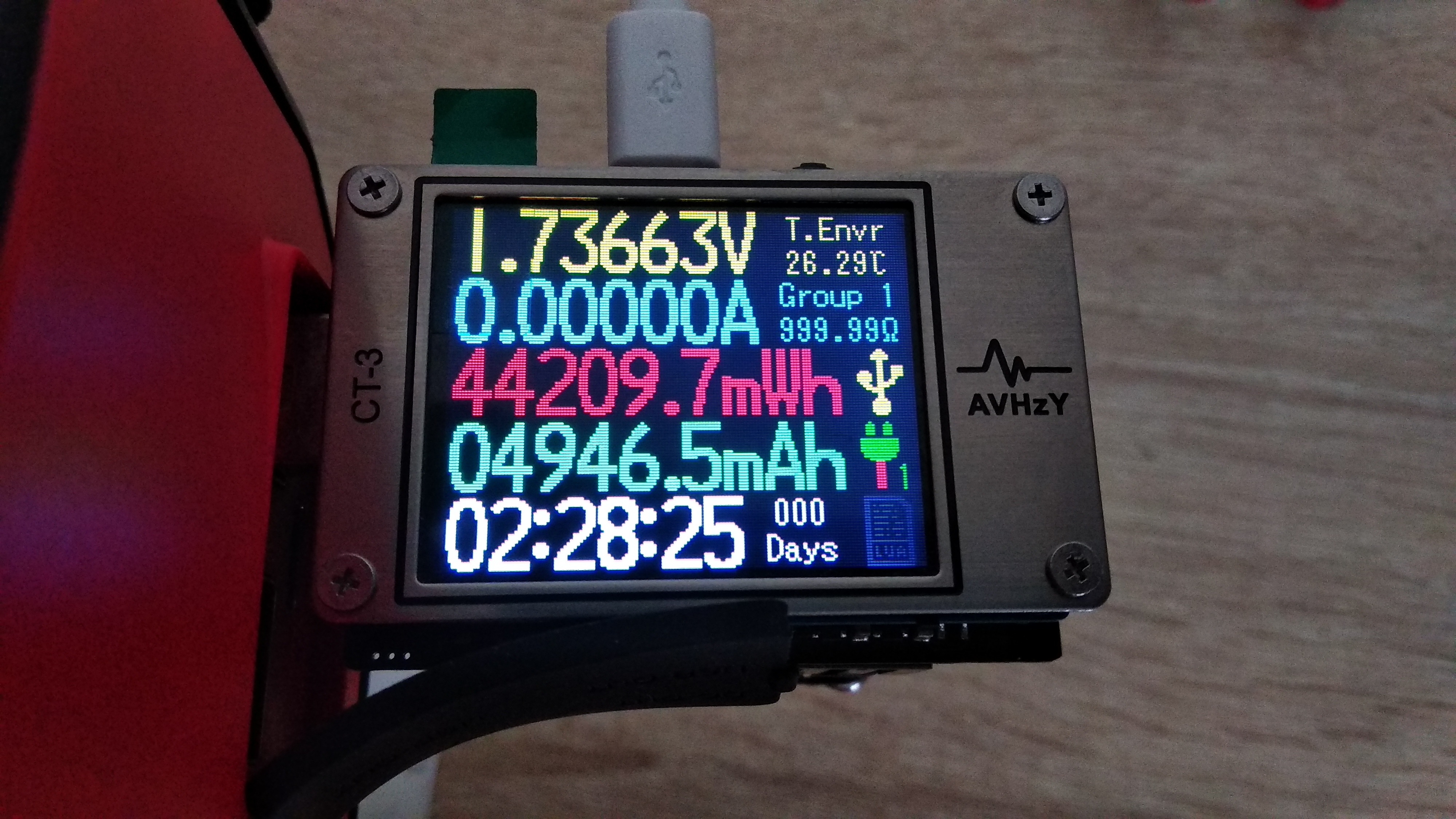 Работа с бустером простая: подключаем модуль к бустеру; цепляем крокодилы красный к «+», черный к «-» на аккумуляторе; ждем когда будет гореть зеленый светодиод и пробуем заводить машину; в случае успеха, отключаем крокодилы. При подключенном бустере, мотор крутил будто я только что приехал и заглушил машину. На всю процедуру, аккумулятор бустера затратил примерно 14% заряда, снизившись с 83% до 69%. Ночью было -32° и лежа в машине, устройство не включилось, на экране показывало t°, явно намекающее на слишком низку температуру.