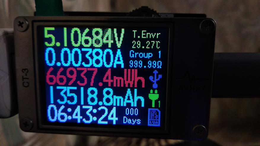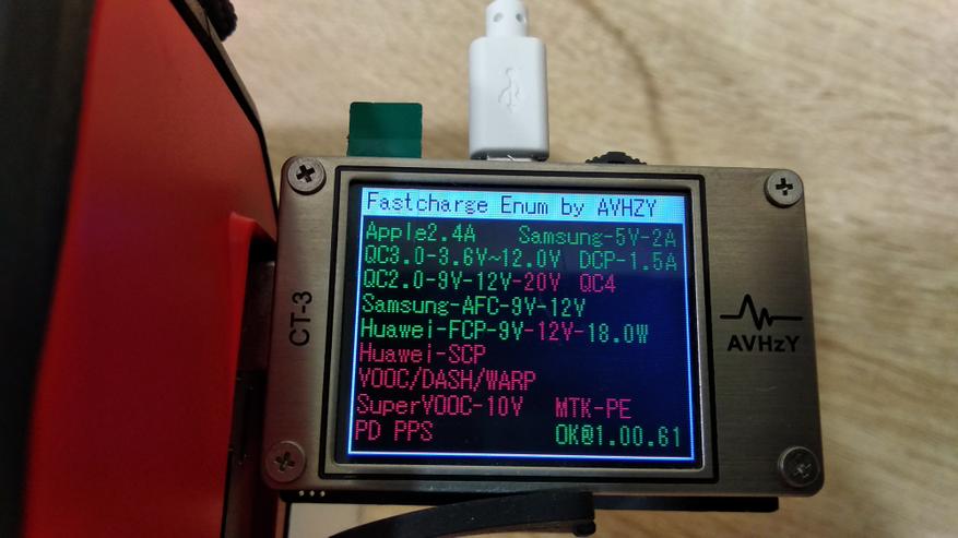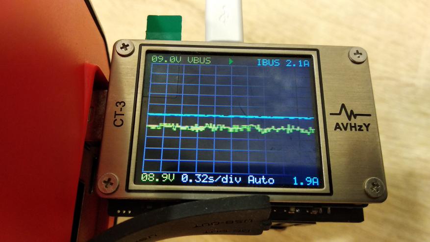 Ну и наконец, как же не иметь функцию внешнего аккумулятора для мобильной техники. Есть базовые протоколы быстрой зарядки, что хорошо, т.к. могли ограничиться обычным 5В/2А, а также сам умеет заряжаться при помощи 9В/2А. Какие протоколы есть, сколько слилось и сколько залилось, все видно на фото. Осциллограмма снята на середине нагрузочного теста.
