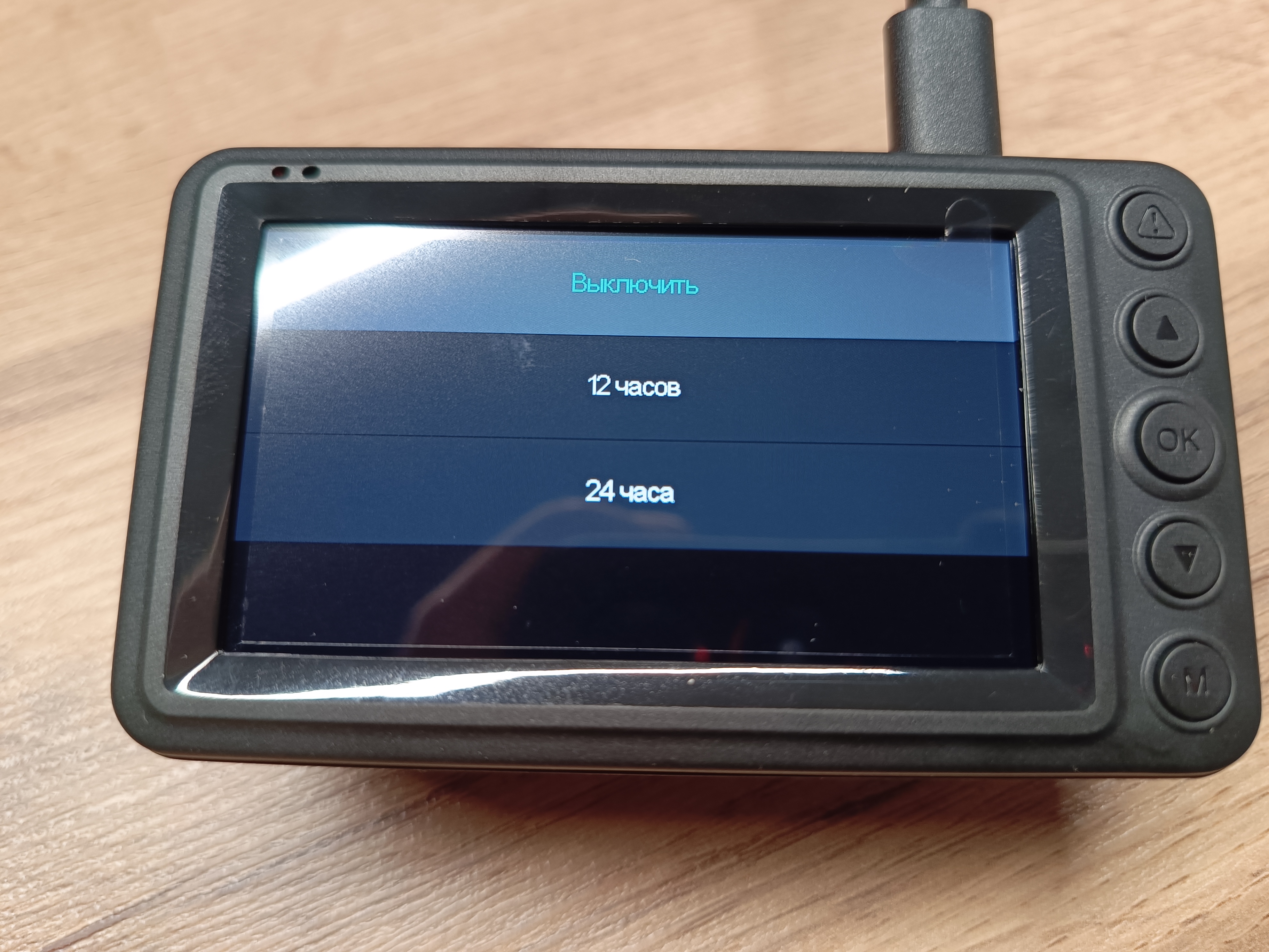 Регистратор питается от комплектного адаптера питания, который подключается к штатному прикуривателю автомобиля с напряжением 12 В или 24 В. Выходные характеристики: 5 В, 2 А, 10 Вт. На конце провода установлен USB-C разъем, следовательно, регистратор можно запитать от практически любого USB-порта, главное, чтобы он соответствовал рекомендуемым параметрам производителя. Заменив адаптер питания на другой, вы лишитесь GPS-модуля, который встроен в провод в виде небольшой коробочки. Устанавливается с помощью двухстороннего скотча, который позволит зафиксировать его на лобовом стекле.