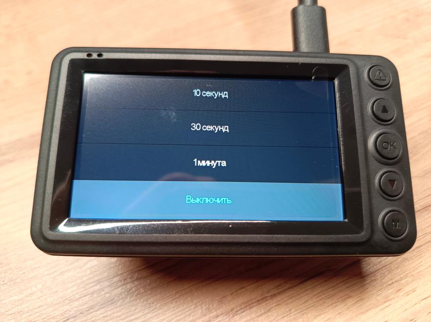 Есть датчик движения, который будет записывать короткие видео, когда будет зафиксировано движение перед автомобилем, а сам файл получит защиту от перезаписи. Датчик движения надо выключать при движении, а иначе файлы будут записываться по 15 секунд.