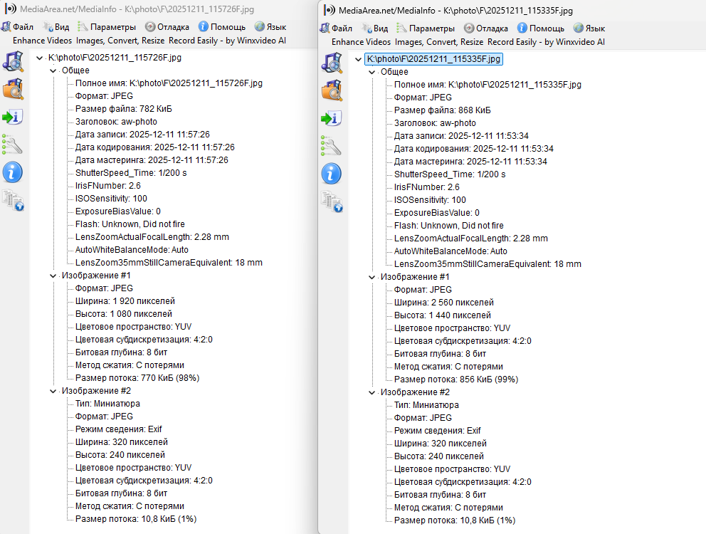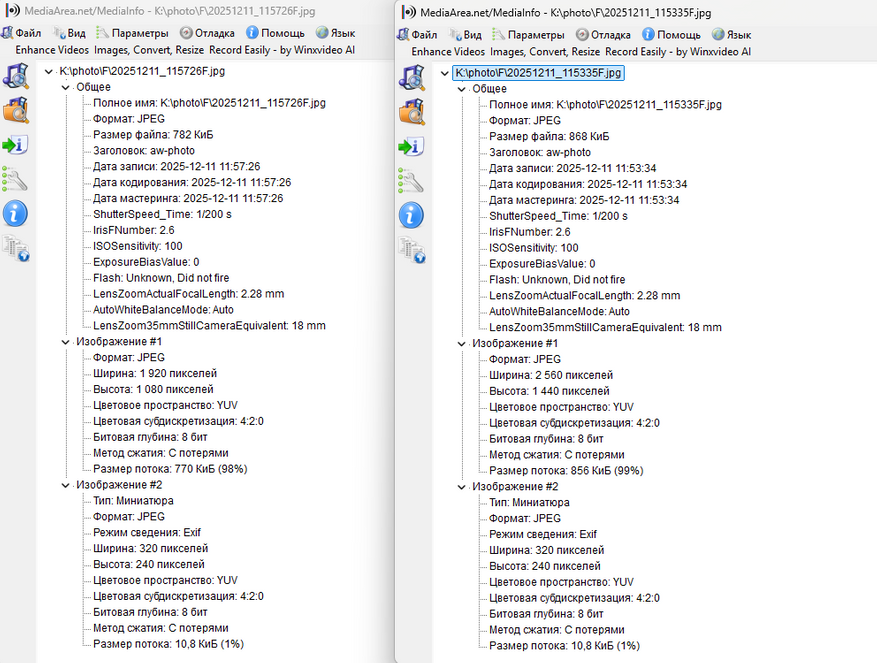 Файл с разрешением 1080х1920 весит 780 Кб, а с разрешением 1440х2560 — 870 Кб. Снимки сохраняются в формате JPG.