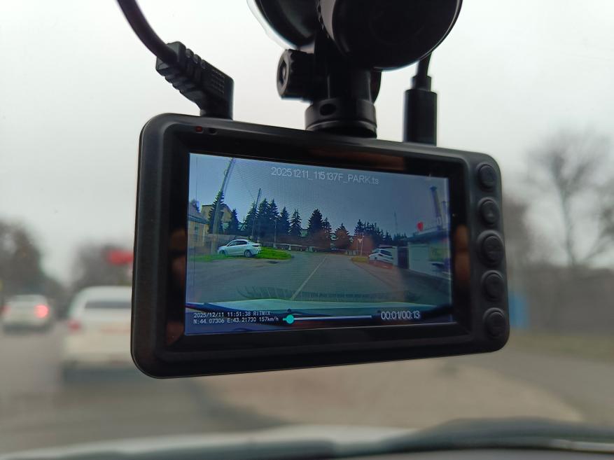 Ritmix AVR-7302 — это функциональный и практичный видеорегистратор, ориентированный на повседневную эксплуатацию в городских и загородных условиях. Наличие GPS-модуля позволяет фиксировать не только видео, но и маршрут движения со скоростью, что особенно полезно при разборе спорных ситуаций. Поддержка двух камер расширяет обзор и повышает общую безопасность, а возможность автоматического включения задней камеры при движении назад делает устройство удобным при парковке. Качество дневной съёмки у основной камеры находится на хорошем уровне: номера автомобилей читаются на разумной дистанции, детализация достаточная для своей ценовой категории. Ночью ситуация ожидаемо сложнее, однако при невысокой скорости или на стоянке информация остаётся различимой. Задняя камера выполняет скорее вспомогательную роль — для фиксации обстановки и манёвров, а не для детальной идентификации.