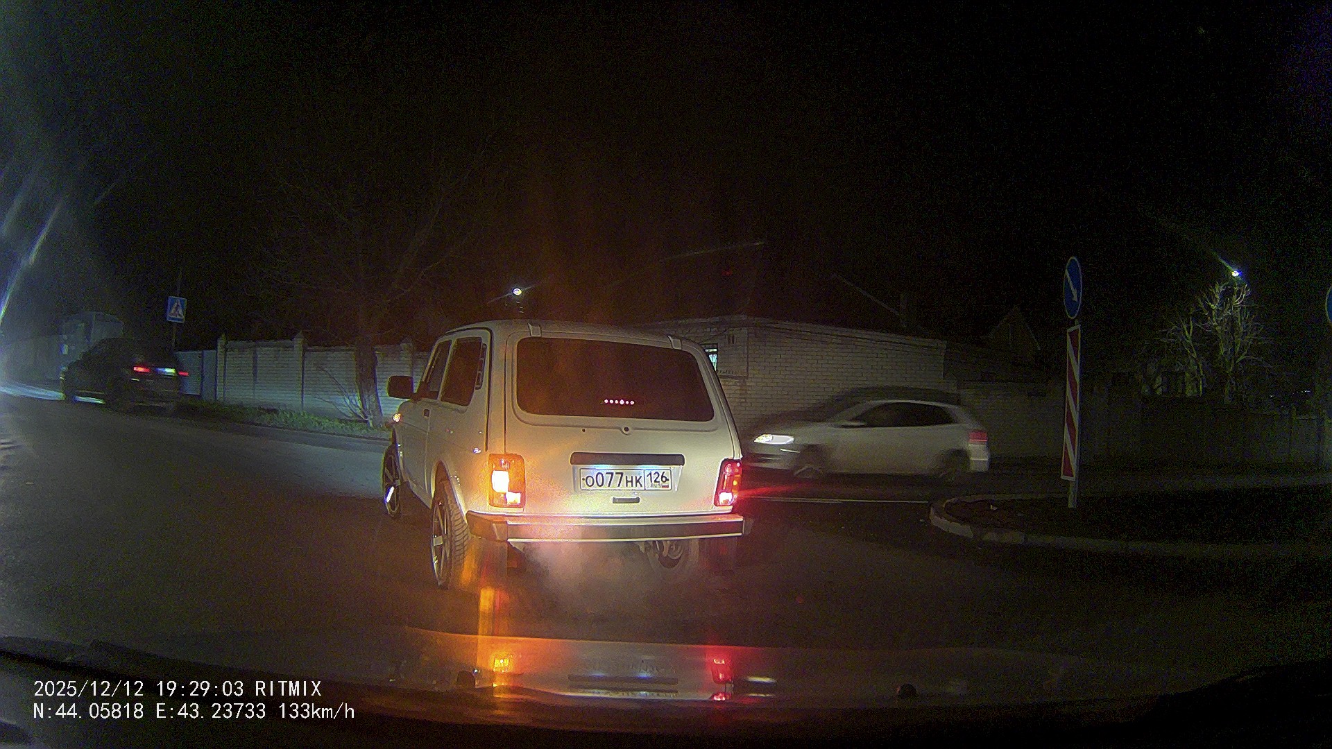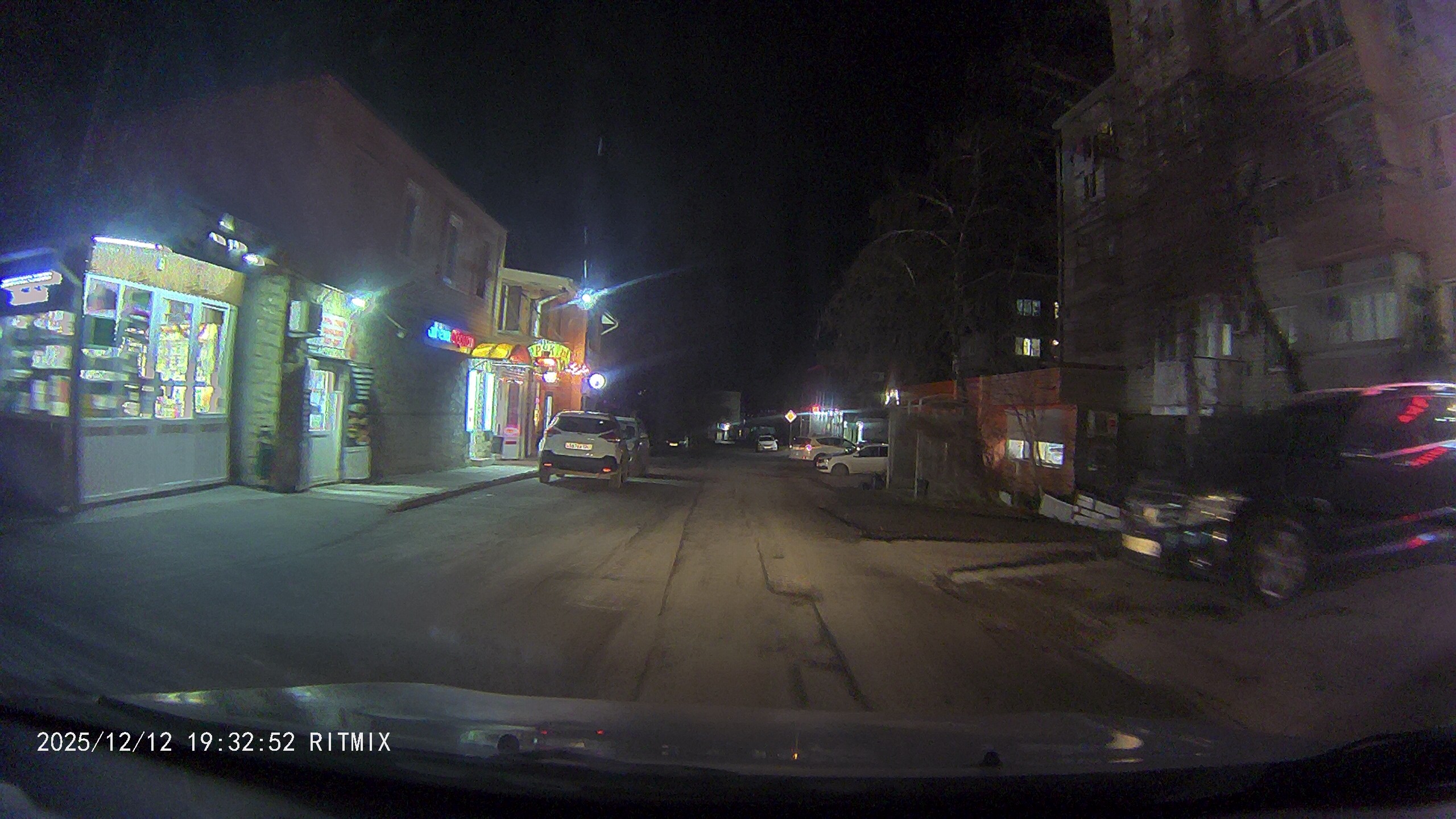 Запись ночью, с камеры заднего вида.