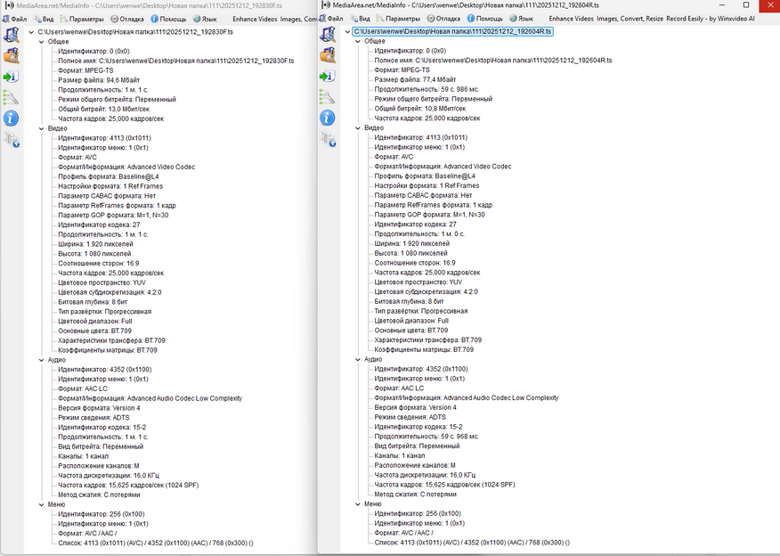 Видео записывается в формате TS. Одна минута у задней камеры занимает 80 мегабайт при разрешении 1080P и битрейтом 10 Мбит/сек. Основная камера при таком же разрешении пишется с битрейтом 13 Мбит/сек и весит 95 мегабайт. В обоих вариантах частота кадров составляет 25 FPS. Если выставить разрешение у основной камеры в 2К, то одна минута будет занимать 120 мегабайт. У задней камеры только одно разрешение — 1080P. Если округлить, то в среднем нужно 200 Мб на одну минуту с обеих камер. Если взять во внимание, что видеорегистратор поддерживает карту до 512 Гб, и провести расчеты, то на один час нужно всего 12 Гб, а на 512 Гб поместится уже около 42 часов видео.