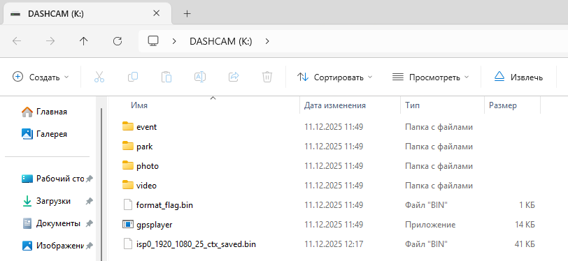 Все записанные видео можно будет просмотреть на самом видеорегистраторе. Если вам нужно будет скопировать видео на компьютер, то придется вынуть карту памяти и вставить в картридер компьютера. К сожалению, сам видеорегистратор не может работать как картридер. На компьютере будет несколько папок с видео, а также папка с фотографиями. Для просмотра маршрута по карте GPS надо будет установить GPS player, который появится на карте памяти после установки карты в видеорегистратор.