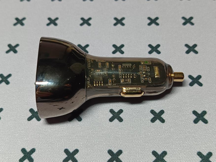 Зарядное устройство привлекает внимание прозрачным корпусом, через который видны все его компоненты. Оно оснащено тремя разъемами: двумя Type-C и одним USB. Уникальность модели в том, что каждый из разъемов поддерживает быструю зарядку и работает независимо. Есть один нюанс, о котором расскажу ниже. Весит зарядка 50 грамм.