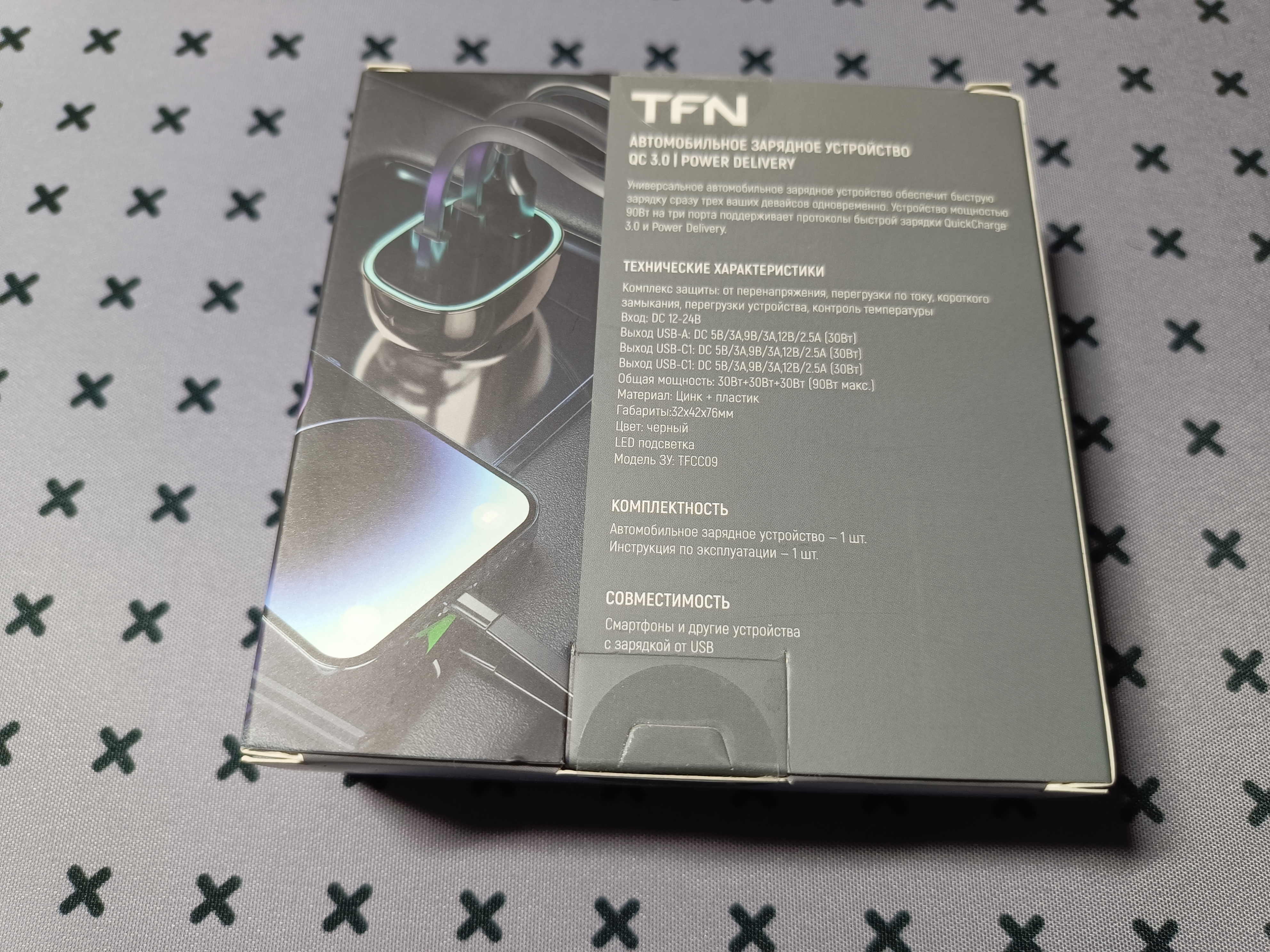 Ну еще есть минус в названии. Производитель может ввести в заблуждение пользователей надписью «90 Вт». Человек будет искать мощную модель для зарядки ноутбука или планшета, а получит всего 30 Вт. Это прописано и в названии TFN-CC-90W-2111-BK, и на самой коробке.