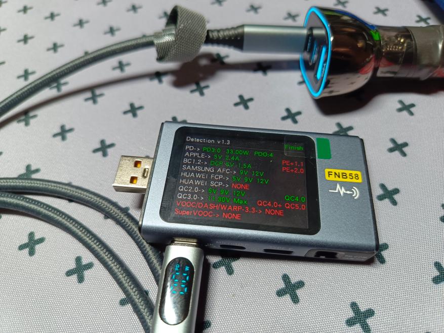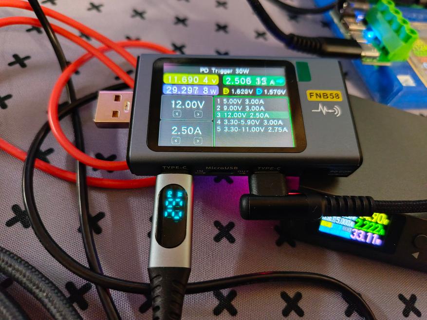 Разъём Type-C 1 — в целом поддерживает все протоколы, что и USB, только здесь добавляется PD 30 Вт. Тестер определяет как PD 33 Вт. В режимах есть 5В, 9В и 12В, а вот 20 В зарядка не поддерживает.