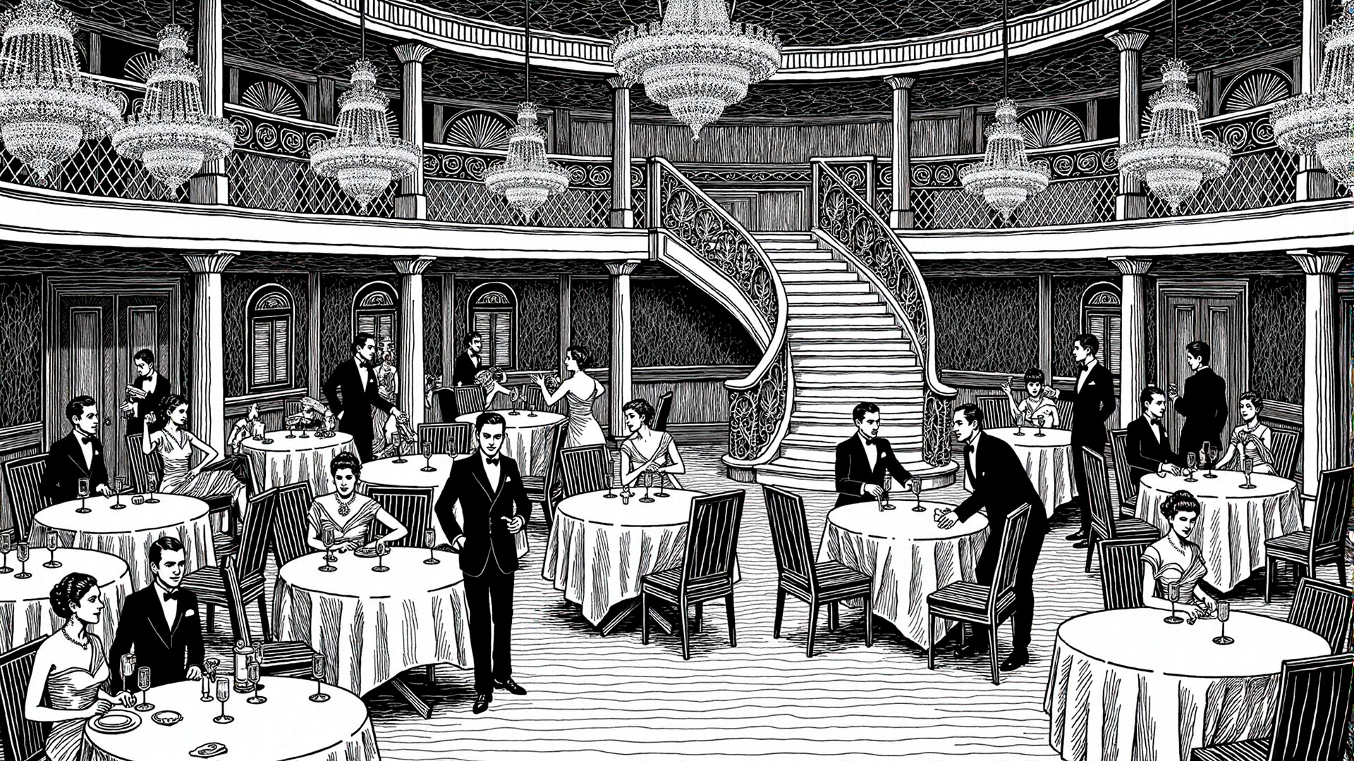Океанские лайнеры той эпохи представляли собой удивительный срез общества, где на нескольких палубах сосуществовали совершенно разные миры. Можно сказать, что перед зрителем предстало бы настоящее классовое общество в миниатюре.