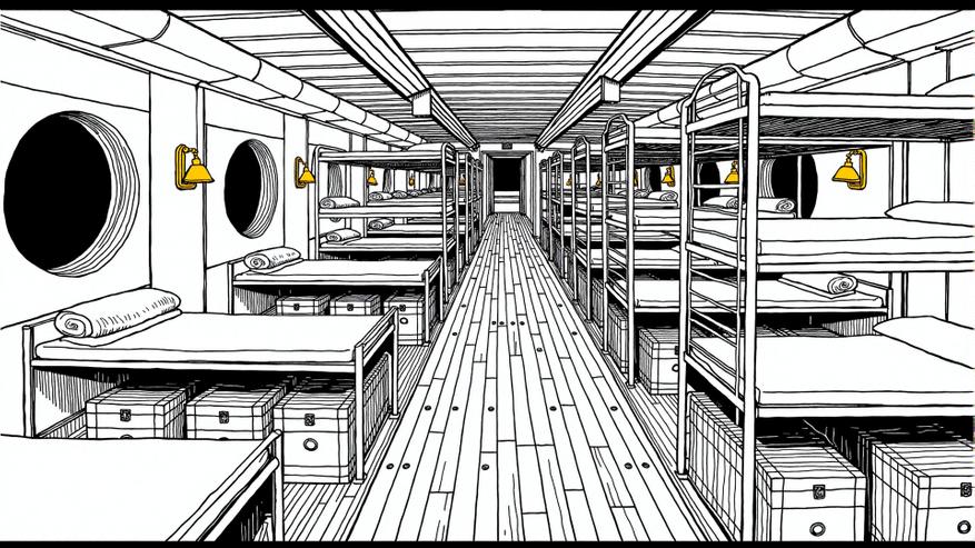 Однако немалую долю дохода судоходным компаниям приносили не состоятельные путешественники, а тысячи эмигрантов, стремившихся в Новый Свет в поисках лучшей жизни — и, в обратном направлении, сотни желавших воссоединиться с семьями или повидать родню. Для них предназначались тесные каюты третьего класса, где в небольших помещениях размещались по несколько человек, а об удобствах приходилось только мечтать. Даже в пятидесятые годы условия там оставались весьма спартанскими: двухъярусные койки, общие умывальники и столовые с самым простым меню. Что называется, «пять старушек — рубль».