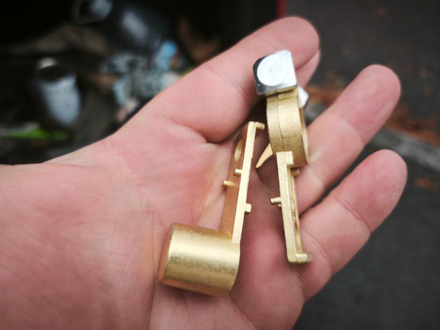 Внутри нас ожидает очень элементарная конструкция. Это, на мой взгляд, очень хорошо, так как здесь буквально нечему ломаться. Два латунных контакта просто зафиксированы на своем месте в корпусе из АКБ-пластика.