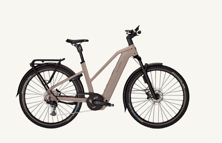 Модельный ряд 2025 года производителя пополнил велосипед Kalkhoff Entice 5+ Excite ABS. Базой конструкции служит рама из алюминиевого сплава. Разработчик установил срединный двигатель Bosch Line CX с 85 Н*м 600 Вт. Дисплей Bosch Kiox 500 с функцией помощи при запуске установлен на руле. Батарея Bosch 800Вт*ч, 22 А*ч служит для обеспечения запаса хода до 170 км. Максимальная скорость, которую поддерживает привод, равна 25 км/ч.