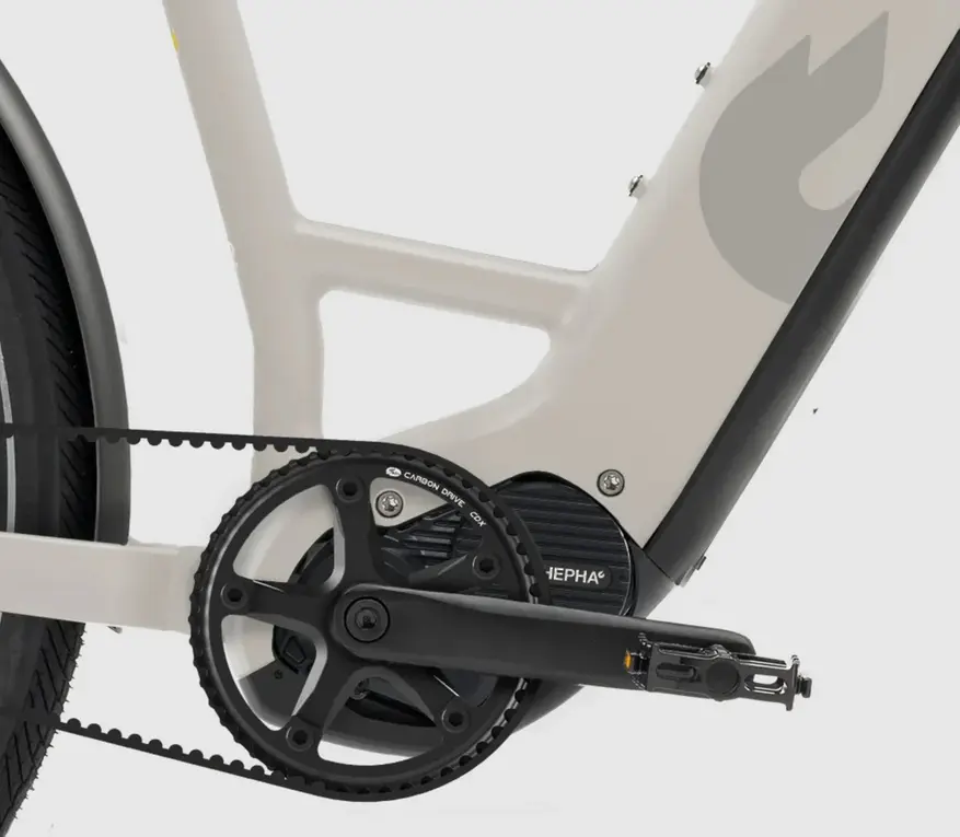 Вилка Suntour NEX-25 с ходом подвески 63 мм амортизирует вибрации и сглаживает неровности дороги. С помощью приложения HEPHA можно настраивать велосипед.