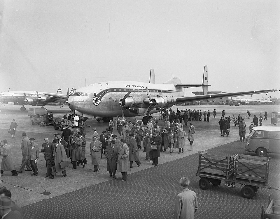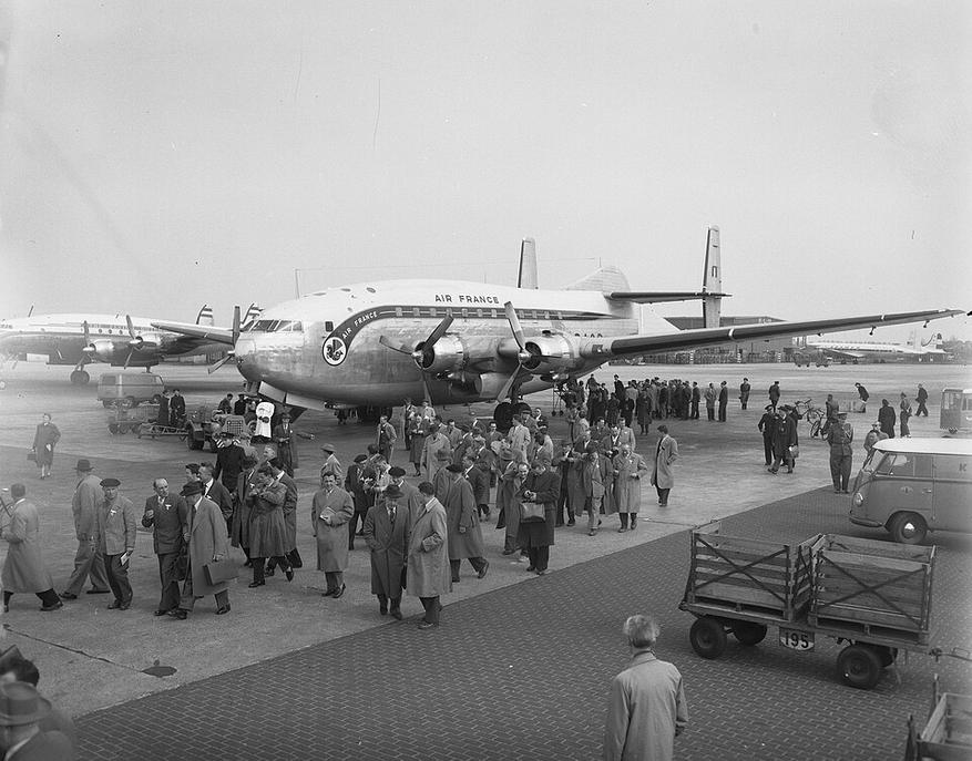 Практически одновременно в США Boeing представил Model 377 Stratocruiser (гражданскую версию военного транспортника C-97). Этот лайнер также имел характерную «двухпузырную» форму фюзеляжа.