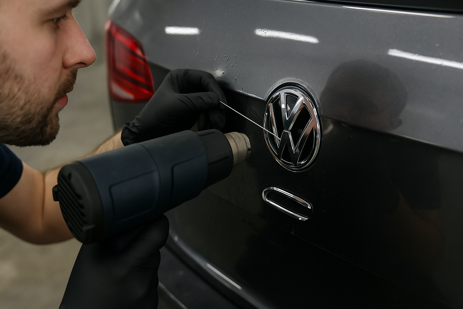 В автомобильной культуре это явление называют коротко — дебэйджинг. С английского debadging переводится как «снять значок». На деле всё выглядит просто: владелец убирает с кузова заводские надписи и логотипы. Стирается, например, «Golf TDI» с крышки багажника Volkswagen, исчезает овальный знак Ford или три кольца Audi. Поверхность остаётся гладкой, как чистый лист бумаги.