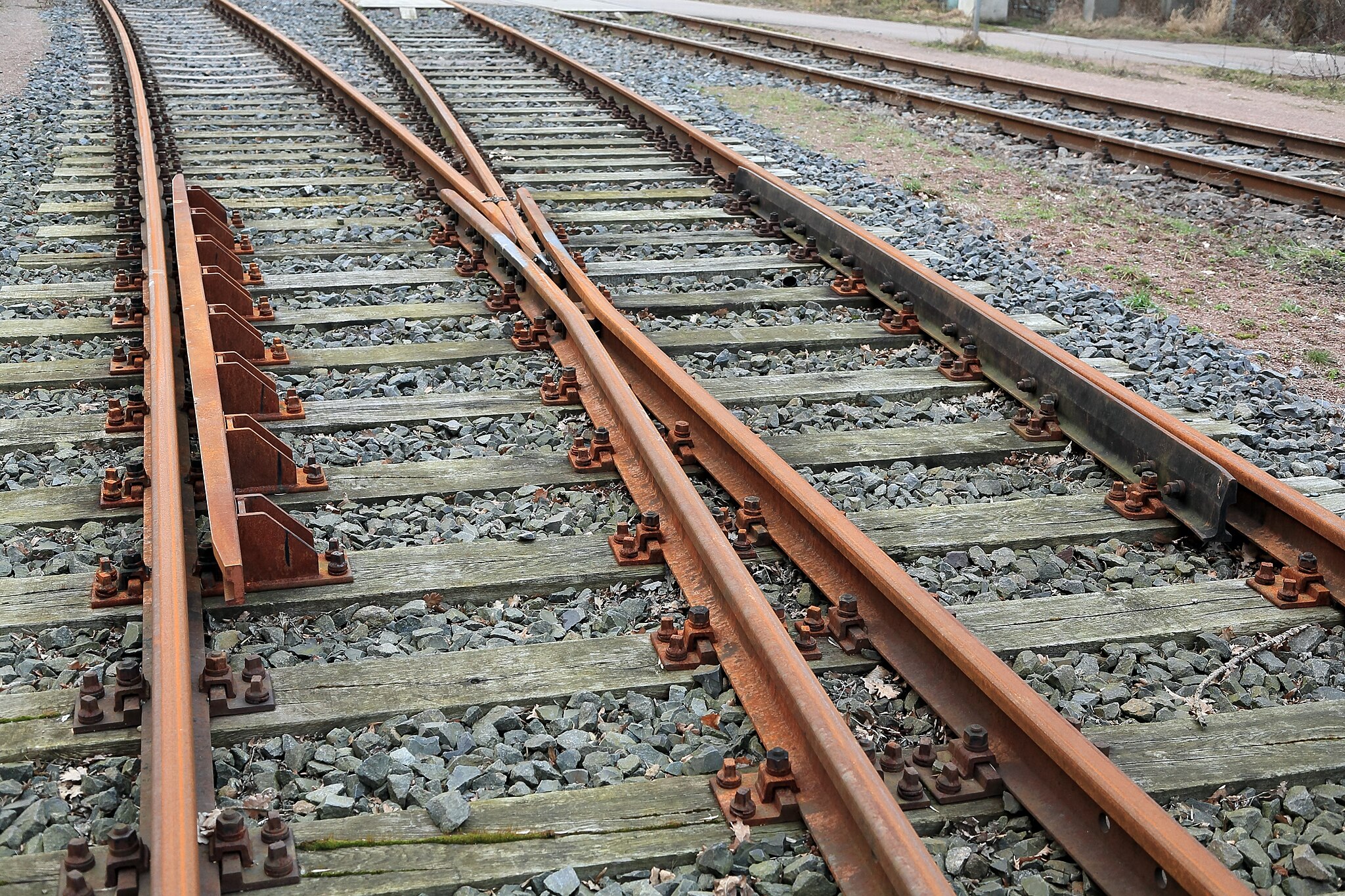 Второй вид этих устройств вы видите гораздо чаще — на любой стрелке. Здесь задача другая: не поймать аварийный поезд, а обеспечить ювелирную точность проезда исправного.