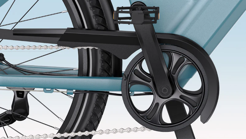 С 27,5*1,95 -дюймовыми городскими шинами, он спроектирован для обеспечения комфорта и простоты использования. Под рамой расположен бесщеточный двигатель мощностью 0,250 кВт и крутящим моментом 42 Н*м в паре с интеллектуальным датчиком крутящего момента, который реагирует за 50 миллисекунд, обеспечивая мощность в синхронизации с ходом педалей. Скорость поддержки привода ограничена 25 км/ч.