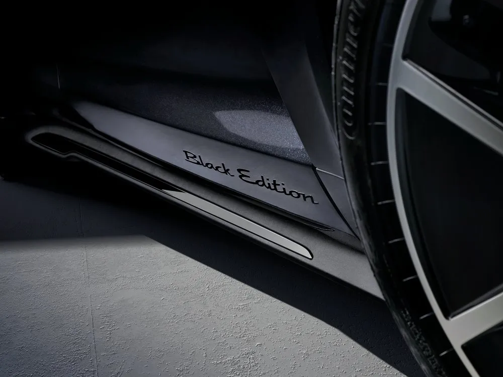 Внешне модели Black Edition отличаются наличием пакета SportDesign, который включает глянцевые черные акценты на оконных рамах и боковых зеркалах. Задняя световая полоса дополнена подсвечиваемым темным логотипом Porsche. В стандартную комплектацию также входят 21-дюймовые колесные диски с центральными колпаками, украшенными полноцветным гербом марки.