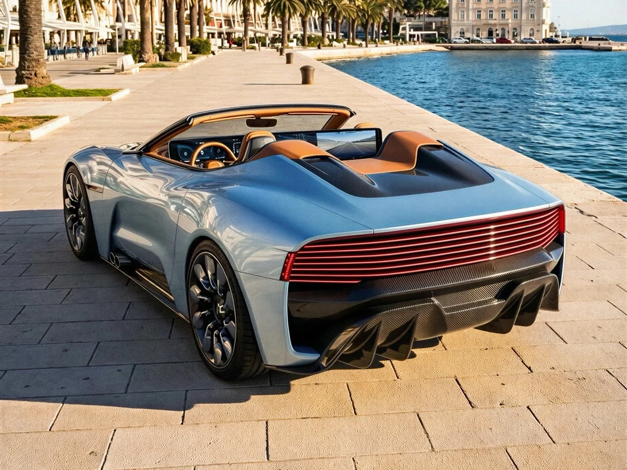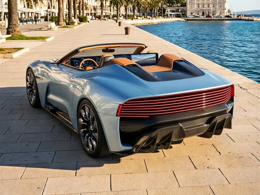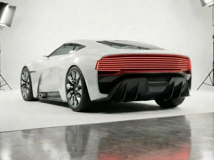 Колёсные диски получили встроенную подсветку в спицах и геометрические вырезы. Предполагаемый размер дисков составляет не менее 22 дюймов. Кузов выполнен в силуэте фастбэк с покатой линией крыши. Пропорции указывают на использование платформы скейтбордного типа, характерной для электромобилей. Задняя часть оснащена светодиодными фонарями во всю ширину кузова, диффузором из углеродного волокна и четырьмя декоративными выхлопными патрубками.