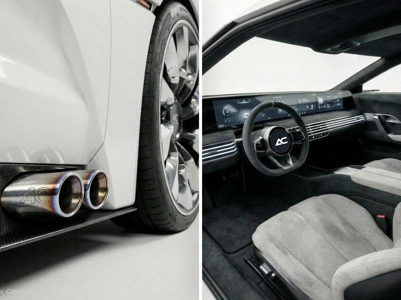 Интерьер следует горизонтальной архитектуре приборной панели с интегрированным экраном. Рулевое колесо выполнено без сенсорных элементов управления и содержит логотип AC, повторяющийся на колёсных дисках.