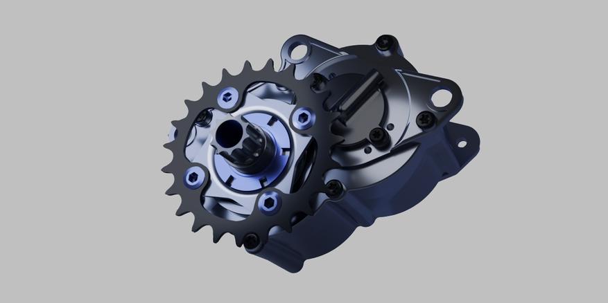 Коробка в металлическом герметичном корпусе крепится в центр рамы велосипеда под стандарт Pinion, оснащается передней звездой 24 зуба с креплением по отверстиям 64 мм (можно использовать и ременную передачу). Крепление шатунов ISIS, для переключения планируется использовать стандартную троссиковую манетку. Передаточные числа коробки: 0,64/ 0,87/ 1,08/ 1,5/ 2,07/ 2,51.