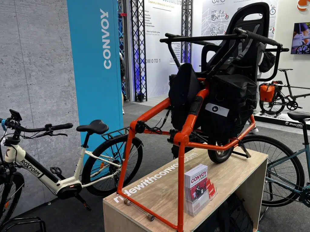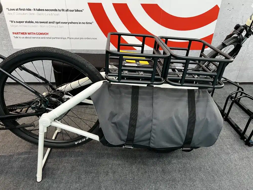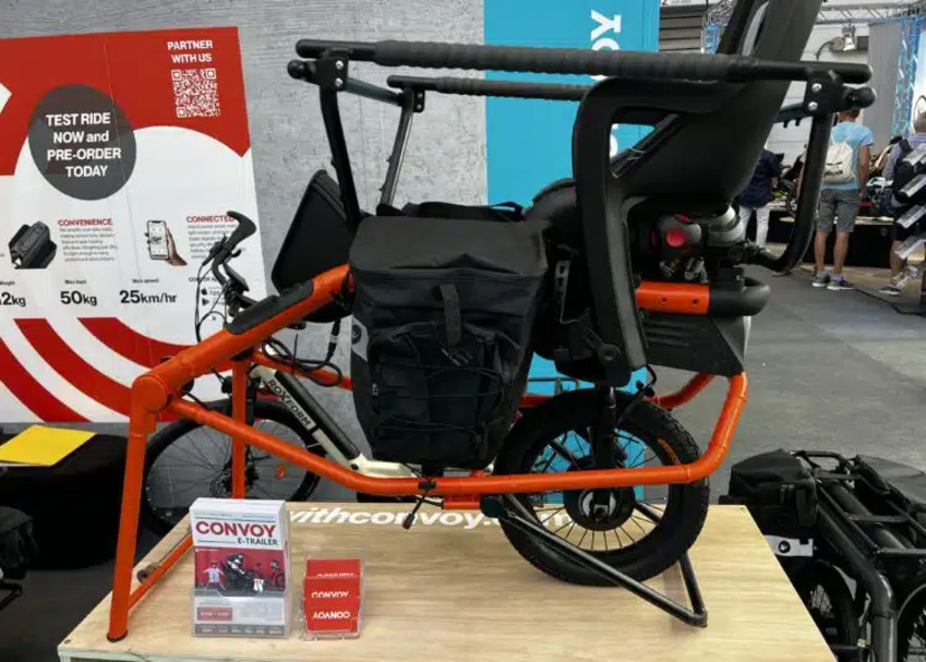 На выставке Eurobike 2025 британский стартап Convoy представил прицеп-трансформер, позволяющий в мгновение ока превратить обычный или электрический велосипед в грузовой. Уникальность разработки заключается в автоматической системе управления задними колесами, делающей прицеп практически неощутимым в движении.