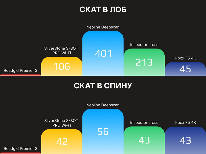 - iBOX F5 PRO 4K LaserScan WiFi Signature Dual как и в прежних тестах издания стабильно удивляет грустным результатом, когда устройство становится откровенно бесполезным в качестве радар-детектора.