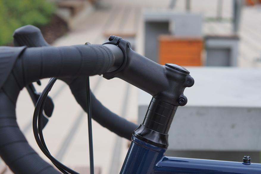 К этому прибавляется еще один не очевидный на первый взгляд момент — вынос с заметным подъемом, который в паре с тремя проставками по умолчанию дает довольно удобное даже для меня, придирчивого гражданина, посадку. То есть, тут вроде как 80 мм длины, как и у многих гревелов. Но солидный подъем а) фактически укорачивает вынос б) делает руль выше, а с ним о посадку. И в то же время стоит только поставить более горизонтальный вынос, убрать одну-две проставки — и мы получим ту самую спорт-посадку.