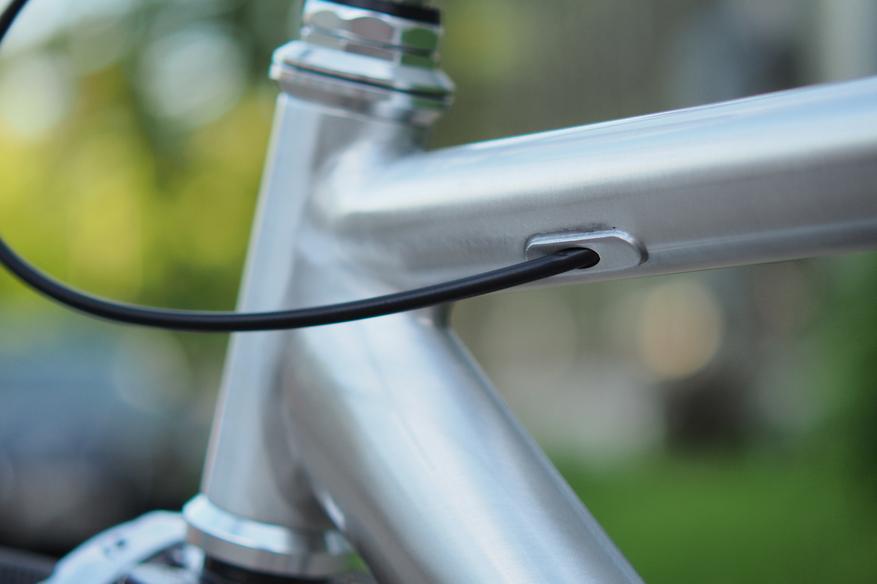 Присутствует внутренняя проводка тросика заднего тормоза. Понятно, что в состоянии «фикс» от этого так сказать ни холодно, ни жарко. Зато если велосипед эксплуатируется как сингл, такое решение делает его уж точно эстетичнее, чем прокладка по верху (то есть именно сверху) трубы.