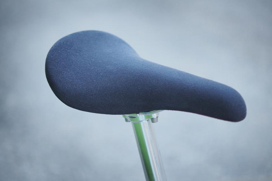 Еще одна находка, которую я видел во многих недавних аппаратах Shulz включая VHS Player — это внезапный акцент на текстиль. Седлом с тканевой обивкой нас не удивишь, это обычная история среди BMX и прочих трюковых велосипедов. При этом хочу отметить, что седло весьма и весьма комфортное — и вероятно одно из самых удобных, что мне доводилось пробовать своей пятой точкой.