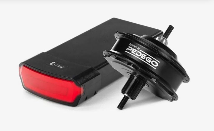 В велосипеде установлен двигатель производства Pedego (52 В; номинальная мощность 749 Вт; крутящий момент 60 Н*м). Для питания двигателя идет аккумулятор 52 Вольта мощностью 17,5 или 10,5 ампер в час с литий-ионными элементами премиум-класса 18650. Аккумулятор отличает функция автоматического перехода в спящий режим.