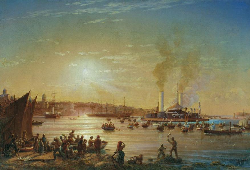 В этих условиях появляется идея контр-адмирала Андрея Попова (1821-1898). Он был не кабинетным теоретиком: служил, командовал, участвовал в Крымской кампании, а потом занялся кораблестроением. К середине 1860-х Попов понимал: у России нет ни ресурсов Британии, ни судостроительных традиций Франции. Значит, надо искать обходные пути.