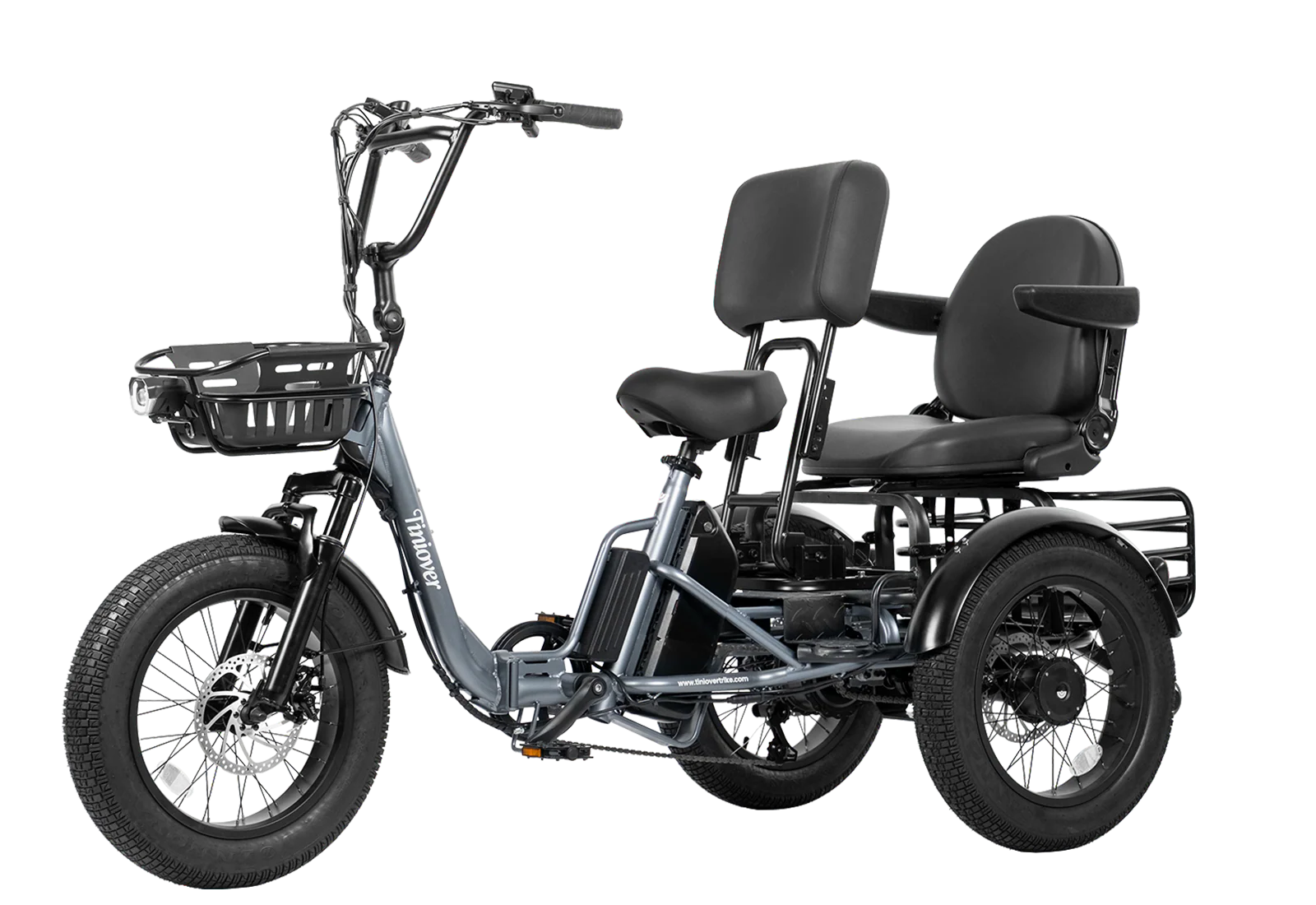 Трехколесный велосипед Creek выдерживает нагрузку до 550 фунтов/около 250 кг. Его рама распределяет вес на три колеса, обеспечивая сбалансированную езду.