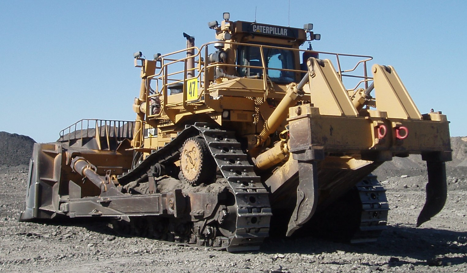 Для начала нужно немного определиться с рейтингом «самых — самых» гусеничных бульдозеров. По количественным показателям (масса и мощность двигателя) лидер — Acco super bulldozer, спроектированный в 80-х для масштабных проектов в Ливии, но оказавшийся не у дел из-за политической конъюнктуры. В серию он не пошел, и единственный экземпляр ржавеет в Италии недалеко от места производства (фирма обанкротилась). Из серийных машин с отвалом самый большой и мощный в мире — японский Komatsu D575A, в Европе наш челябинский Т-800. А вот Caterpillar D11 находится примерно между ними по характеристикам, но выпущен кратно в большем количестве. Это ли не залог успеха?
