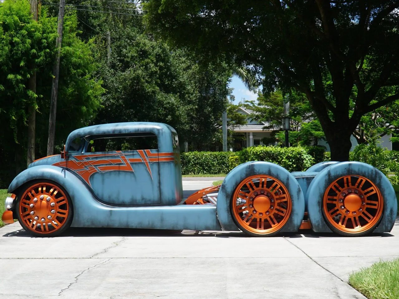 Уникальный шестиколёсный кастомный грузовик Cab Over Evolved, созданный Аароном Баком из Milk Man Concepts, в настоящее время участвует в аукционе с максимальной ставкой 137 000 долларов. Автомобиль, изначально построенный в 2021 году, представляет собой модифицированную кабину пикапа Ford, оснащённую 5,9-литровым рядным шестицилиндровым турбодизельным двигателем Cummins 6BT от Dodge D250 1991 года.