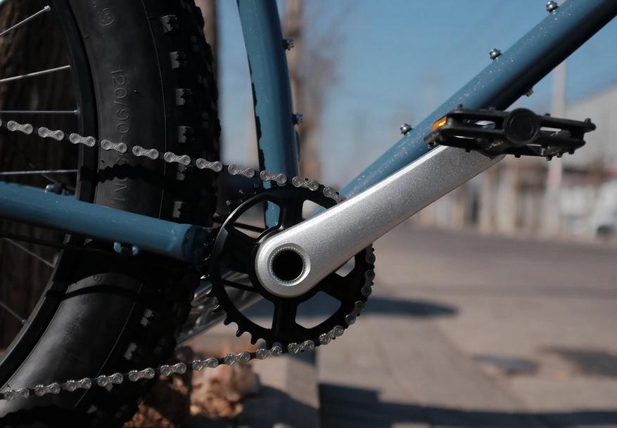 Фэтбайк оснащен 12-скоростной трансмиссией с задним переключателем S-Ride RD-M520, большой кассетой SunRace 11−50T, цепью KMC X12 и манеткой S-Ride SL-M510. Тормоза — гидравлика Tektro Gemini HD-M3520 с роторами 180/180 мм.